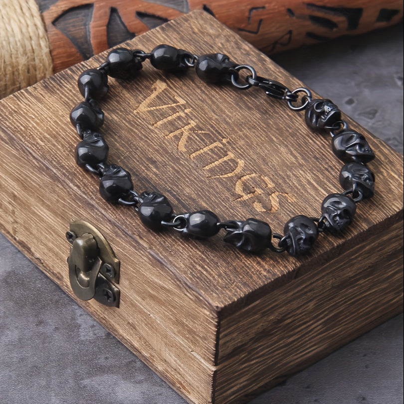 Add a touch of edgy style to your look with this punk skull chain bracelet. Perfect for men who love unique jewelry pieces.