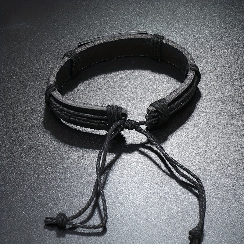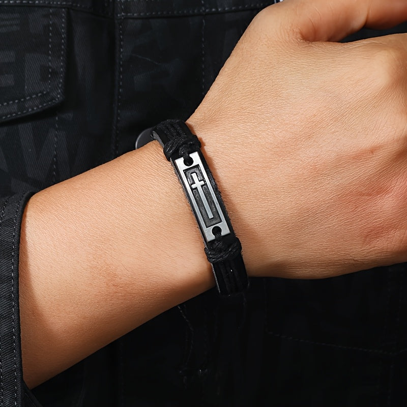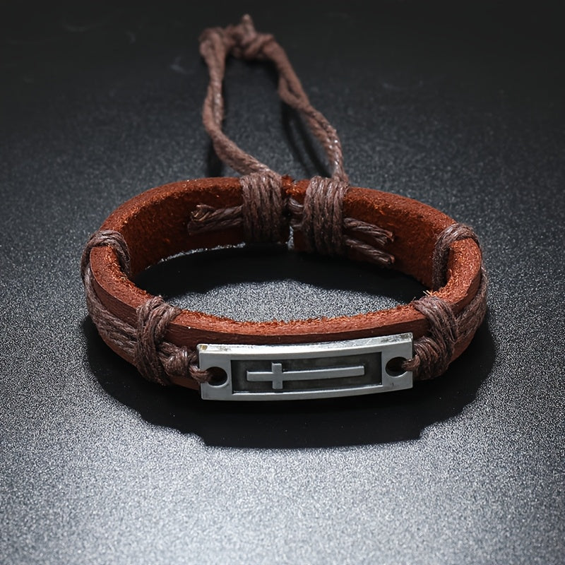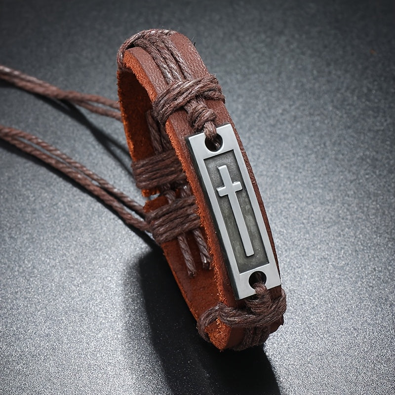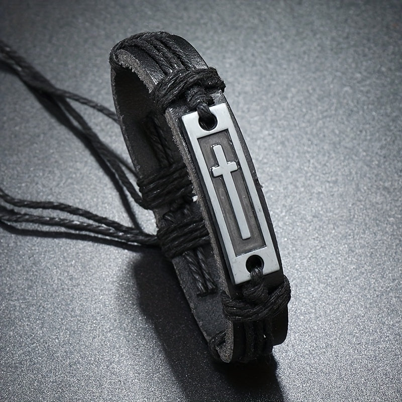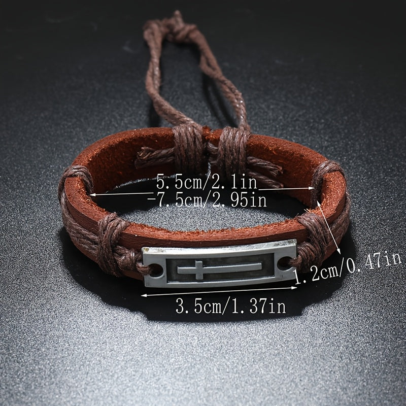 Add a vintage touch to your casual outfit with this faux leather bracelet. Features an adjustable pull-out strap and a stylish cross design.