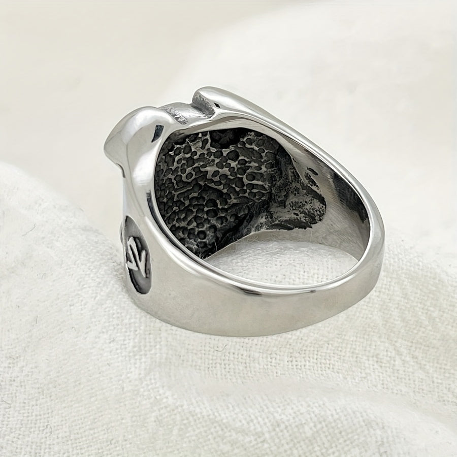 Add a touch of vintage charm to your style with this stainless steel ring featuring a motorcycle engine design.