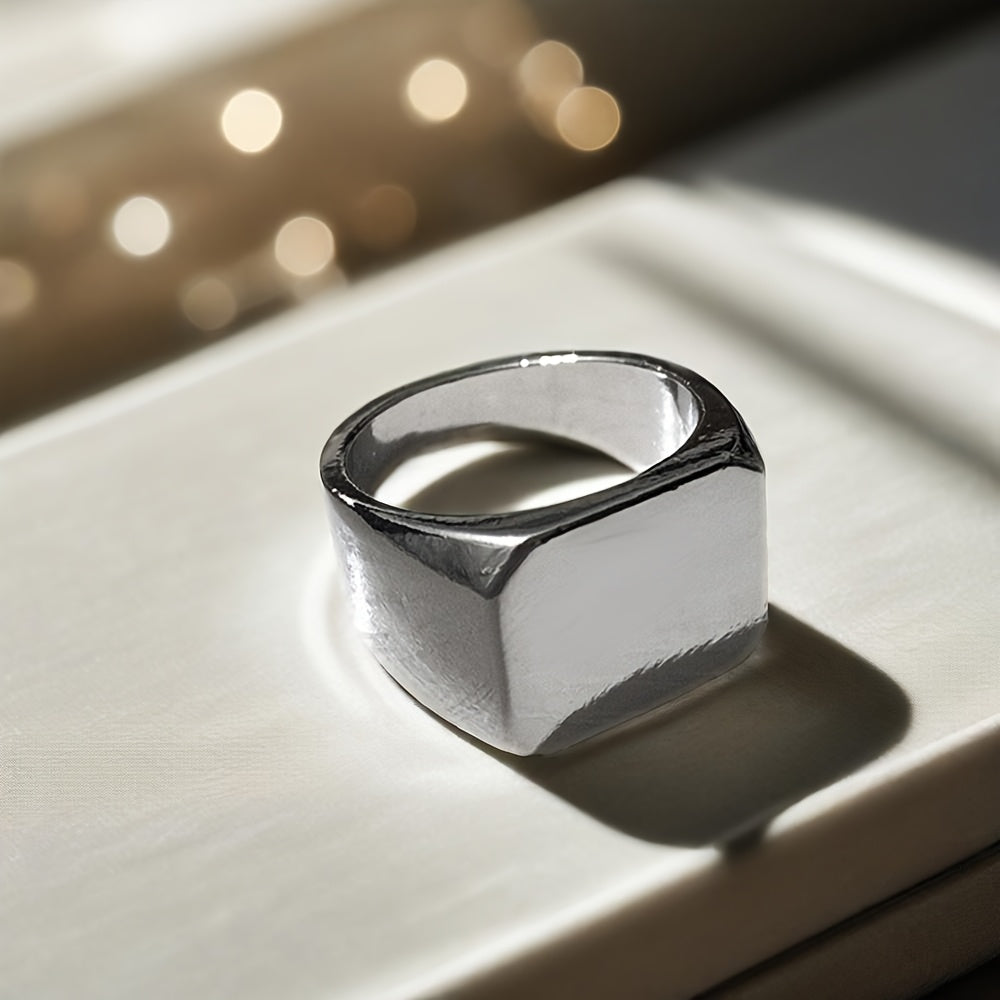 This stylish men's ring features a minimalist design crafted from 316 stainless steel with a polished light grey finish. It is durable and suitable for everyday wear, perfect for both casual and formal occasions.