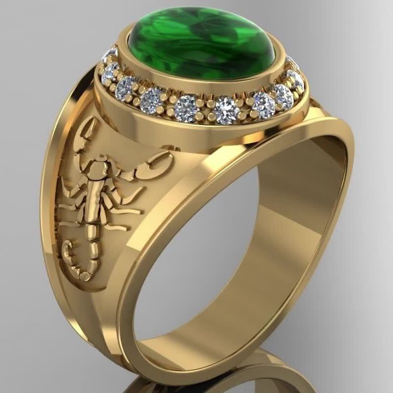 Add a touch of bold style to your look with this scorpion ring featuring a vibrant green cubic zirconia set in copper. Perfect for both casual and formal wear.