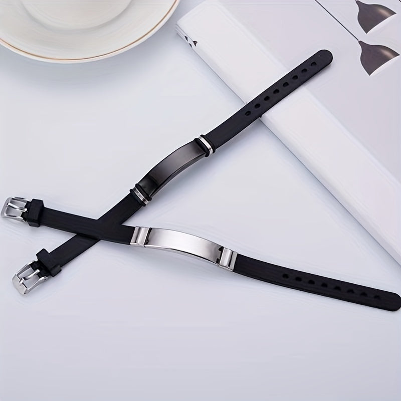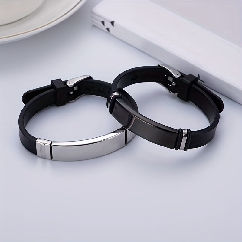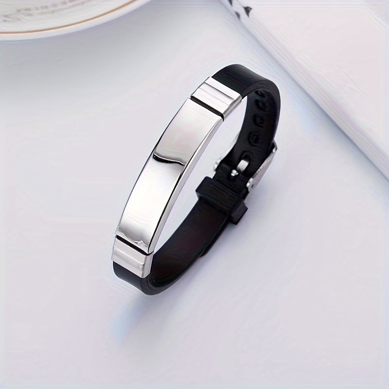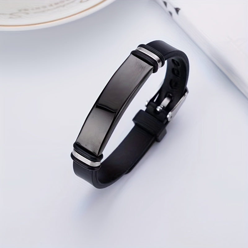 This custom men's silicone bracelet is a stylish and practical gift for birthdays. It features engraved details and is perfect for couples. The silicone material ensures durability and comfort for everyday wear.