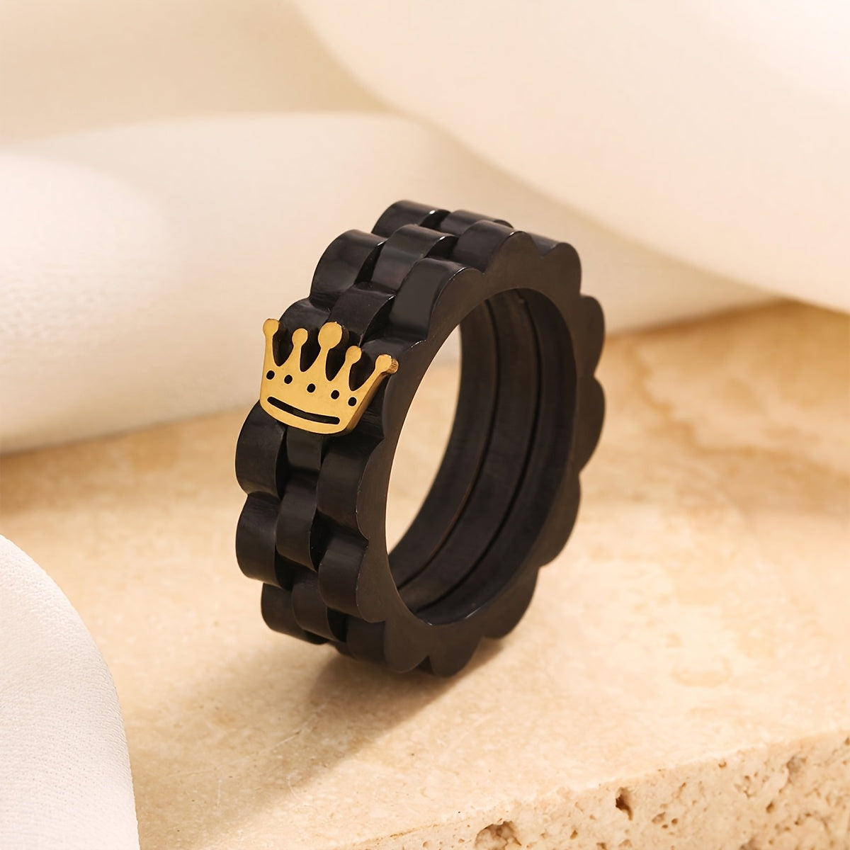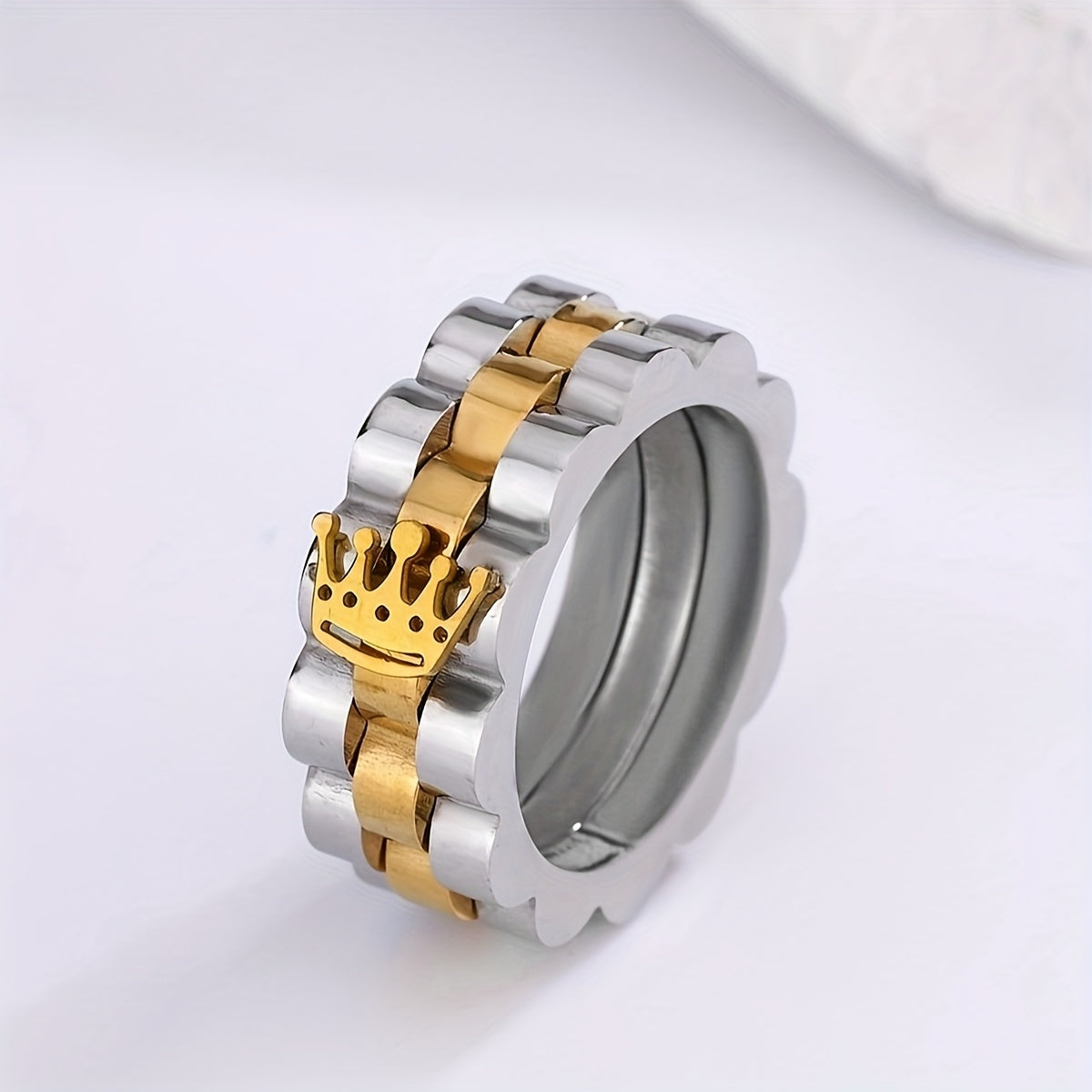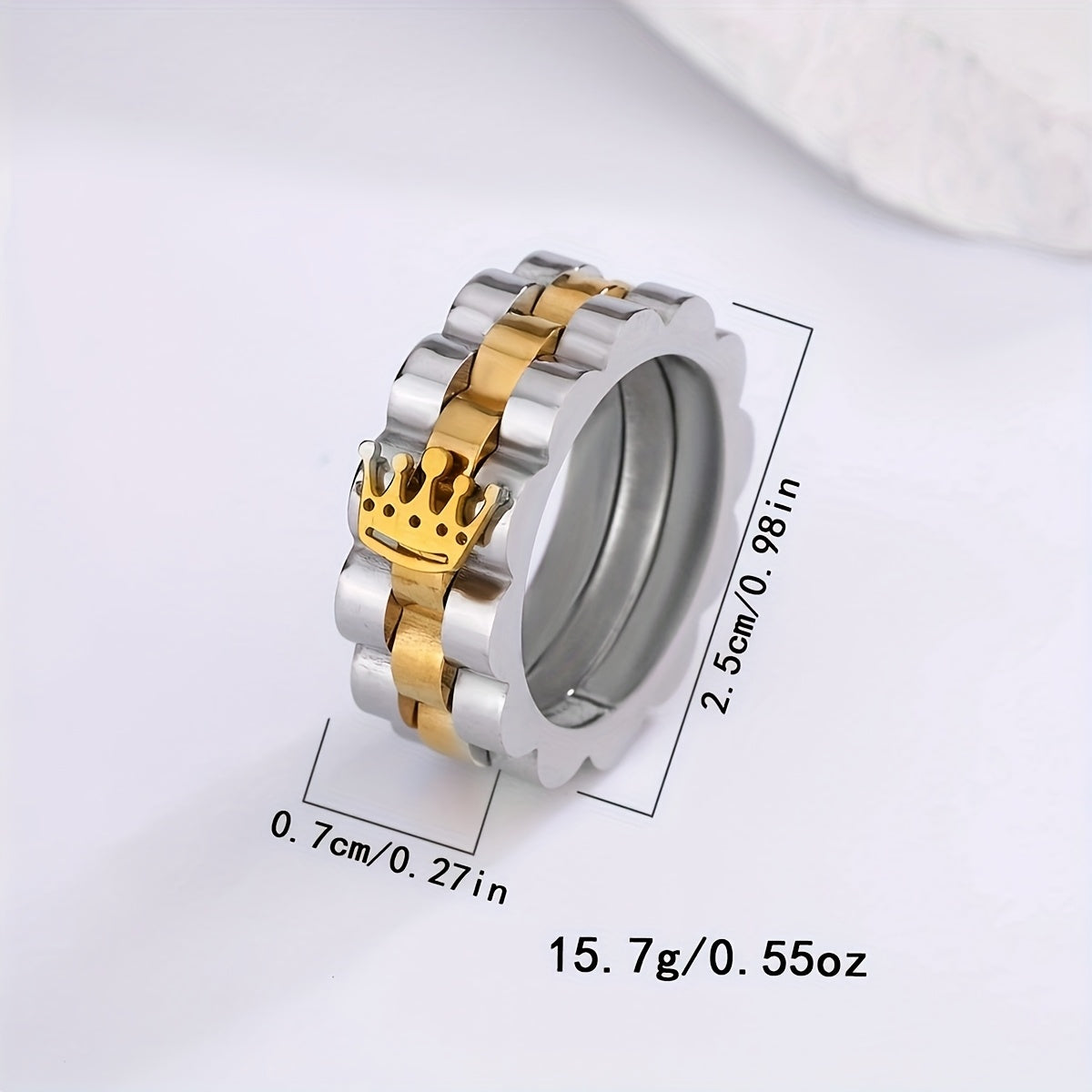 This men's ring features a stylish crown design made with durable 304 stainless steel. It is a fashionable and sturdy accessory.