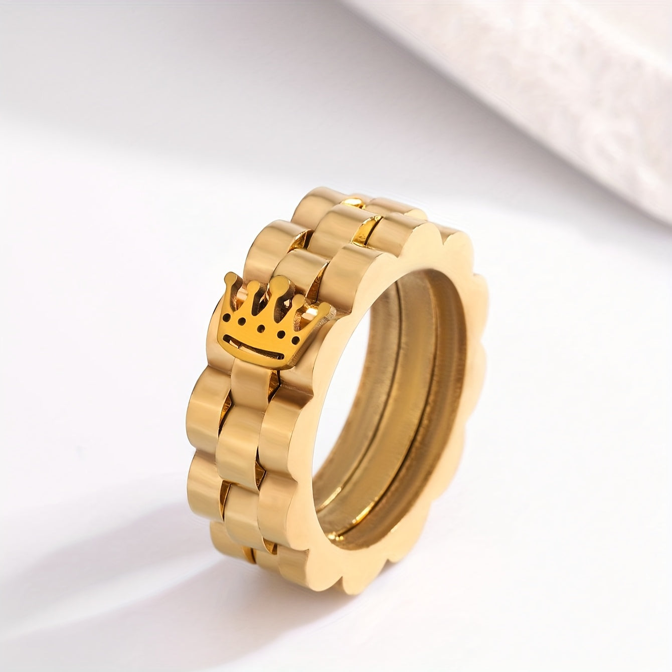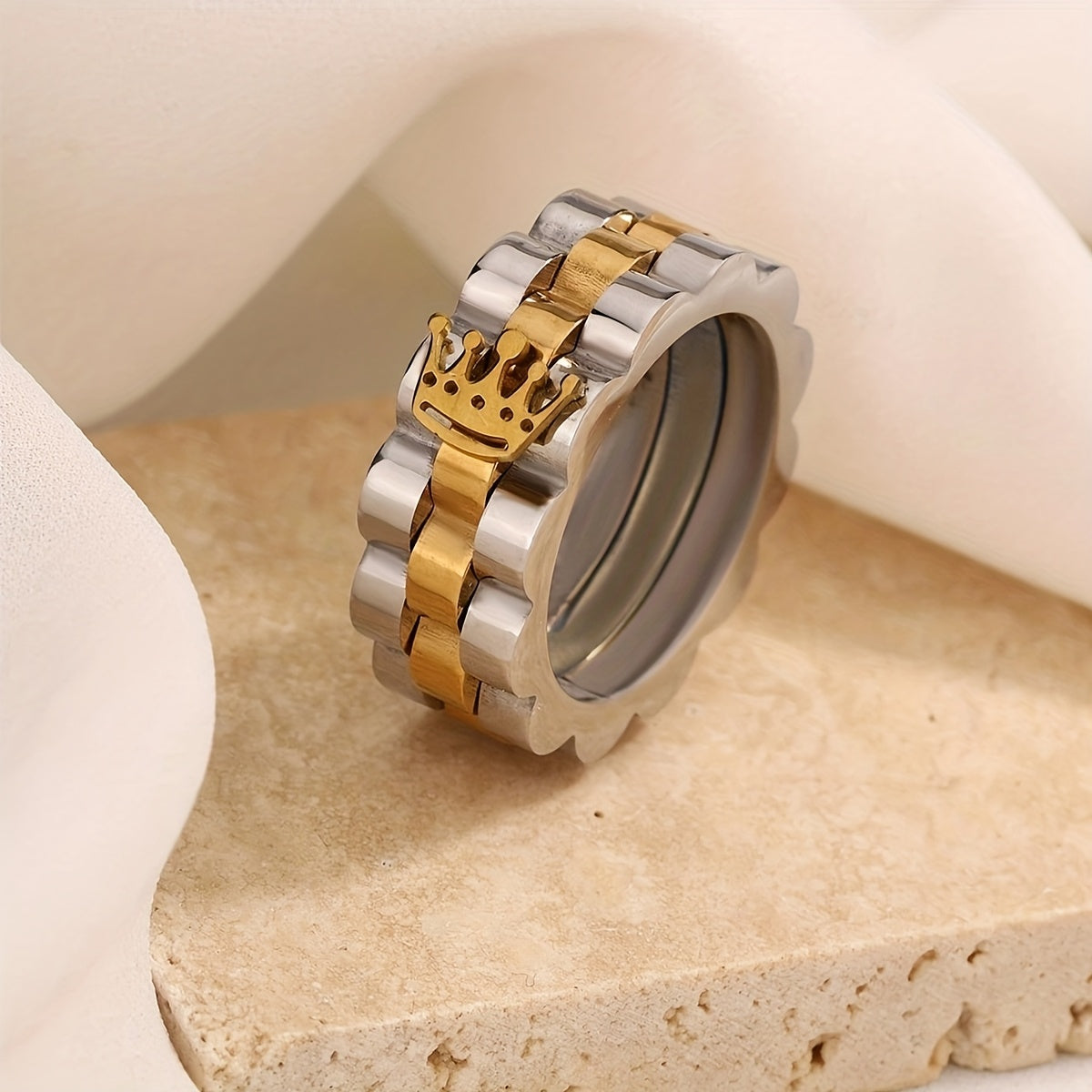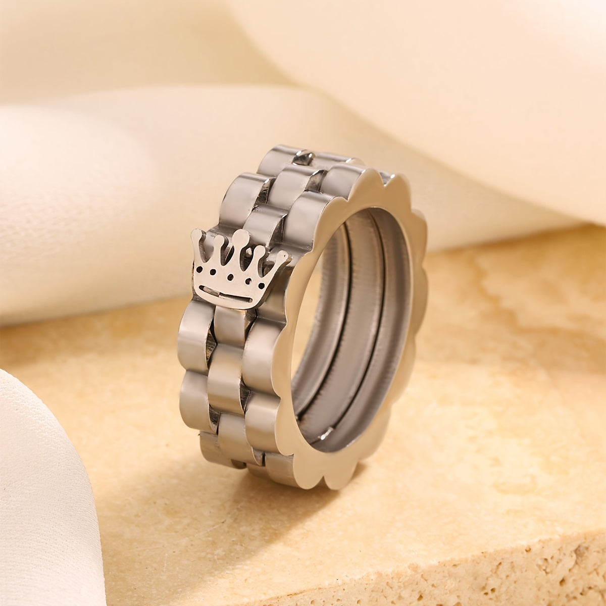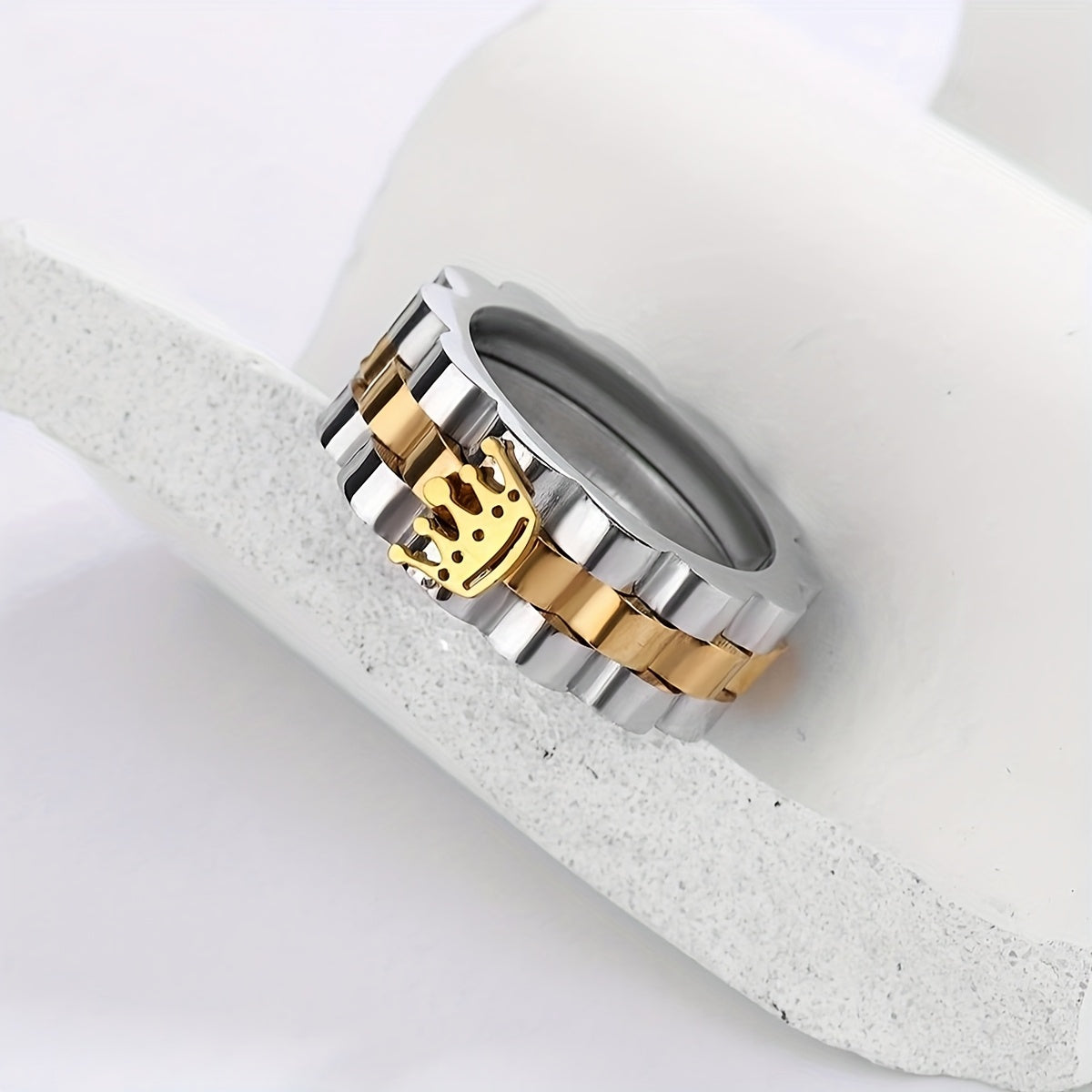This men's ring features a stylish crown design made with durable 304 stainless steel. It is a fashionable and sturdy accessory.