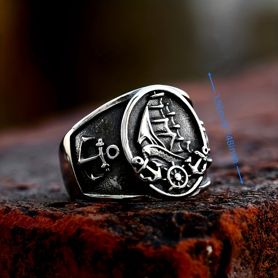 This hip hop style ring features a nautical anchor and sailboat design. Constructed from stainless steel, it is durable and non-plated.