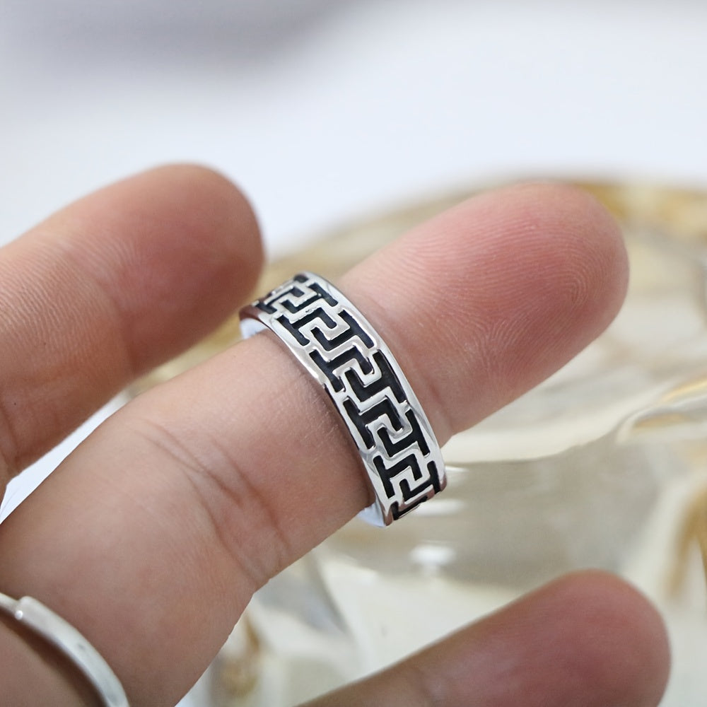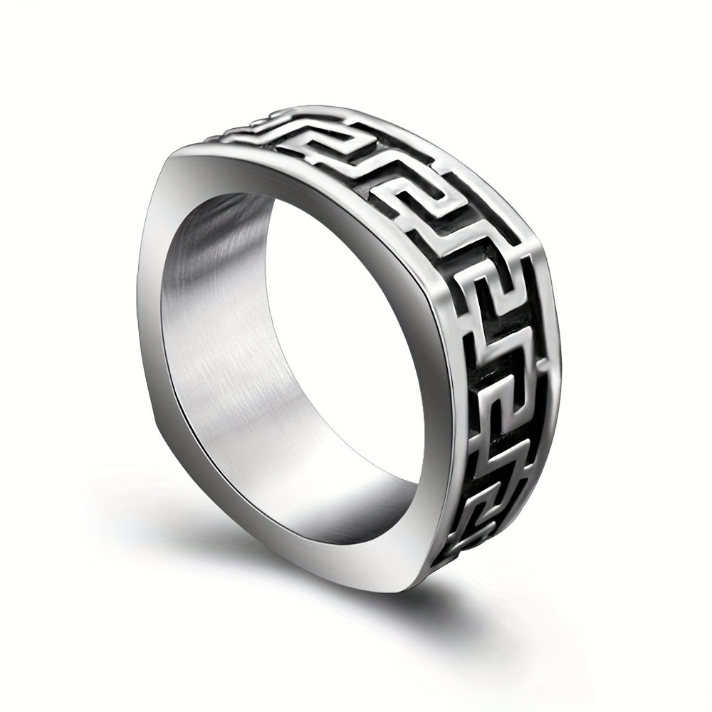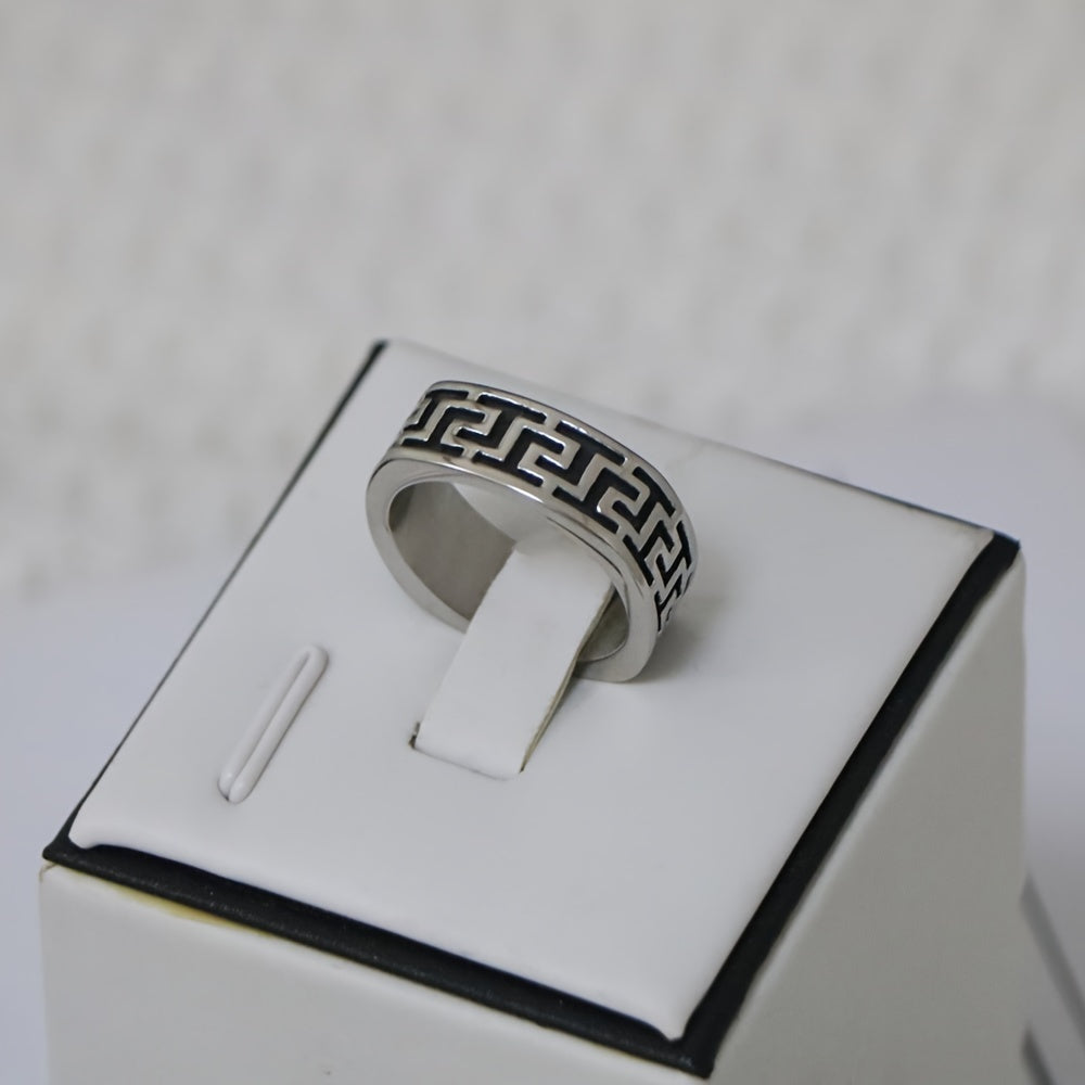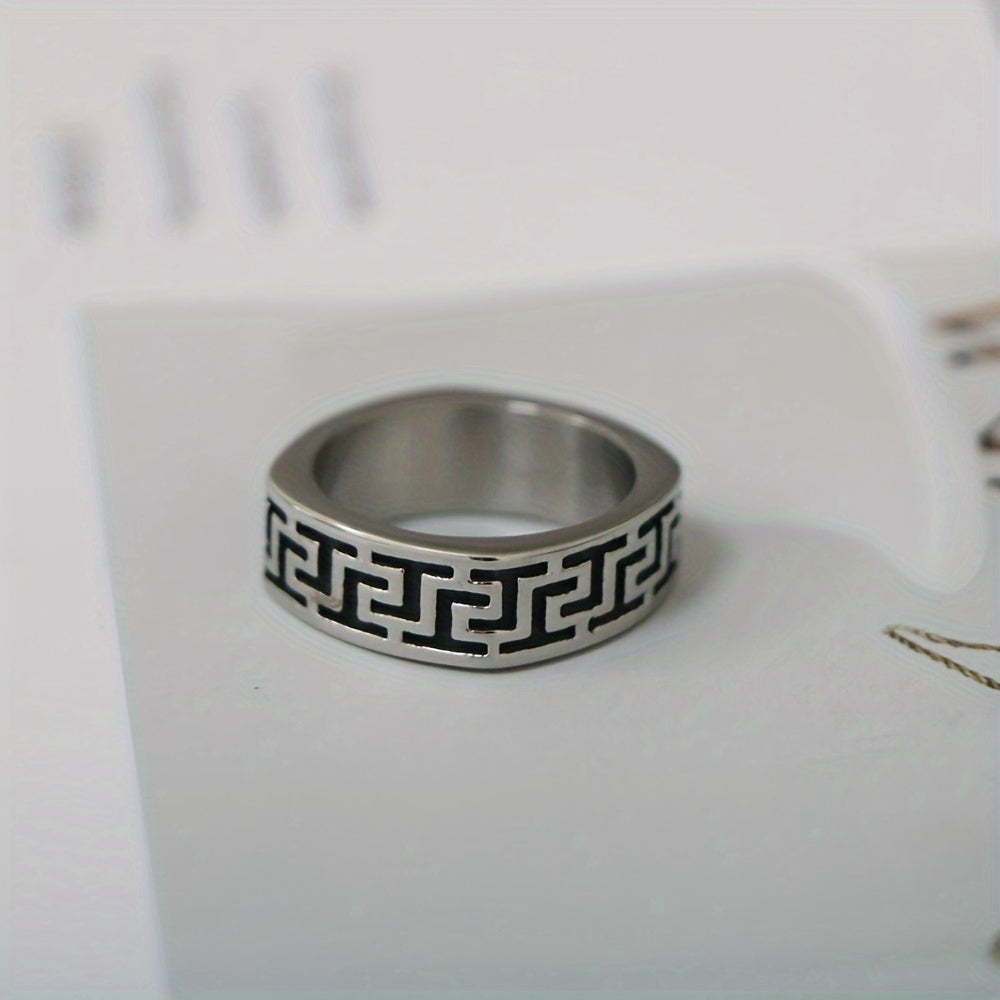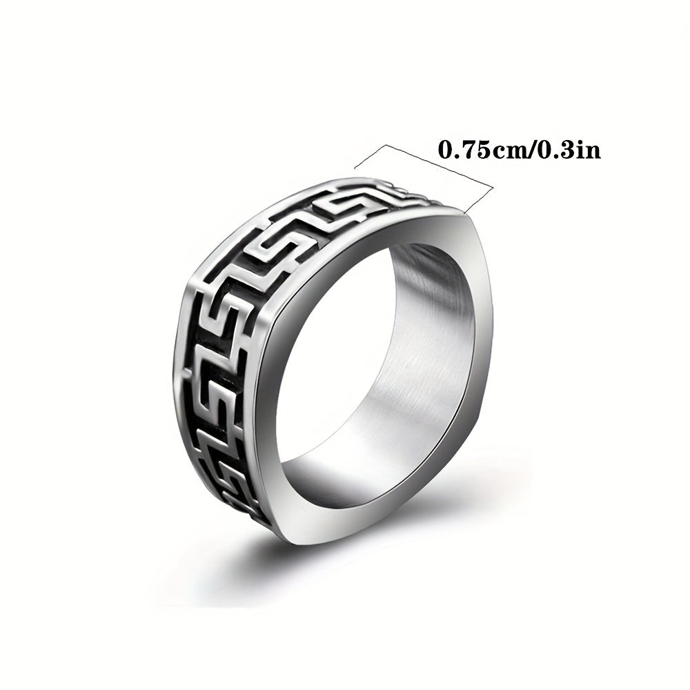 Make a bold statement with this stylish ring featuring a Great Wall pattern. Crafted from 304 stainless steel, this ring is durable and comfortable to wear. Perfect for casual attire or special occasions.