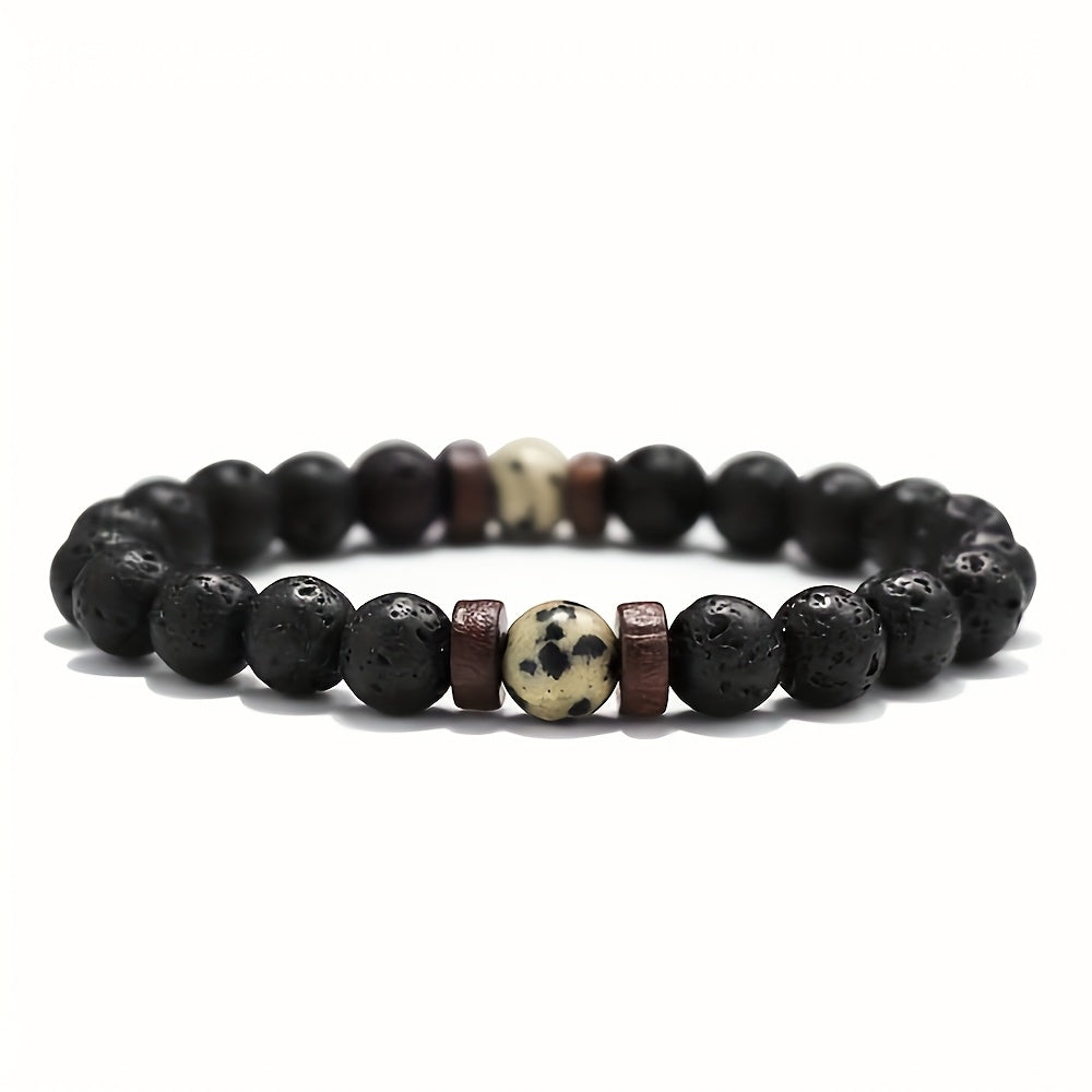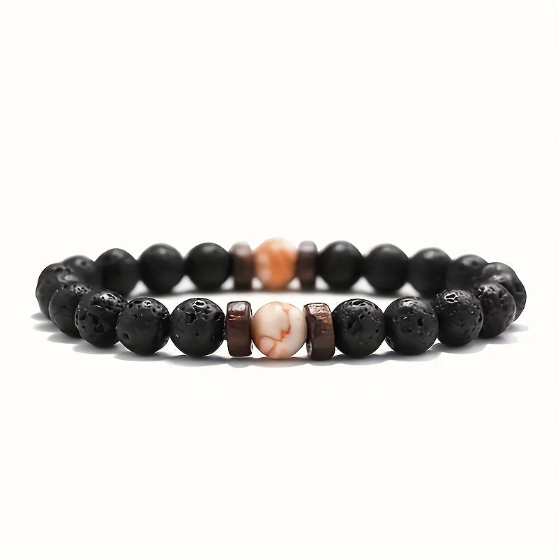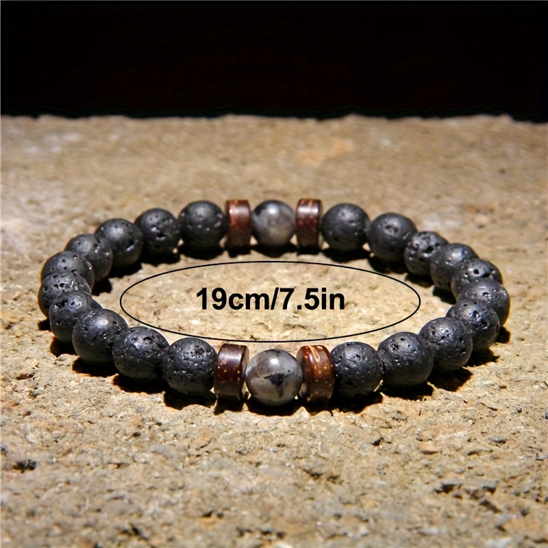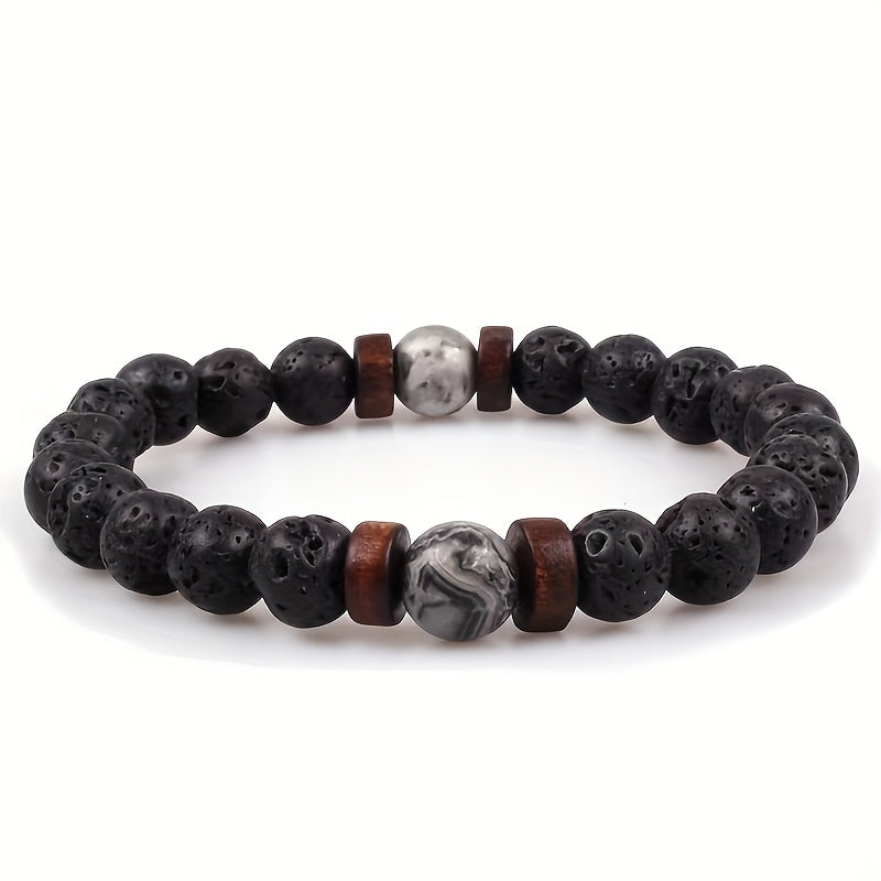 Enhance your casual attire or party look with this adjustable men's bracelet. Made of natural stone beads with wood spacers and elastic band for a comfortable fit.