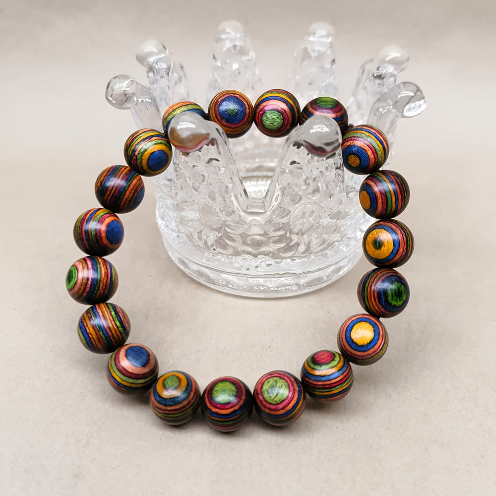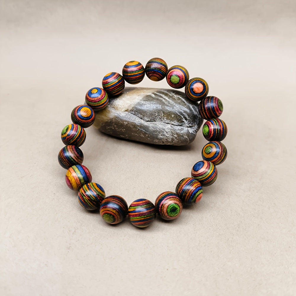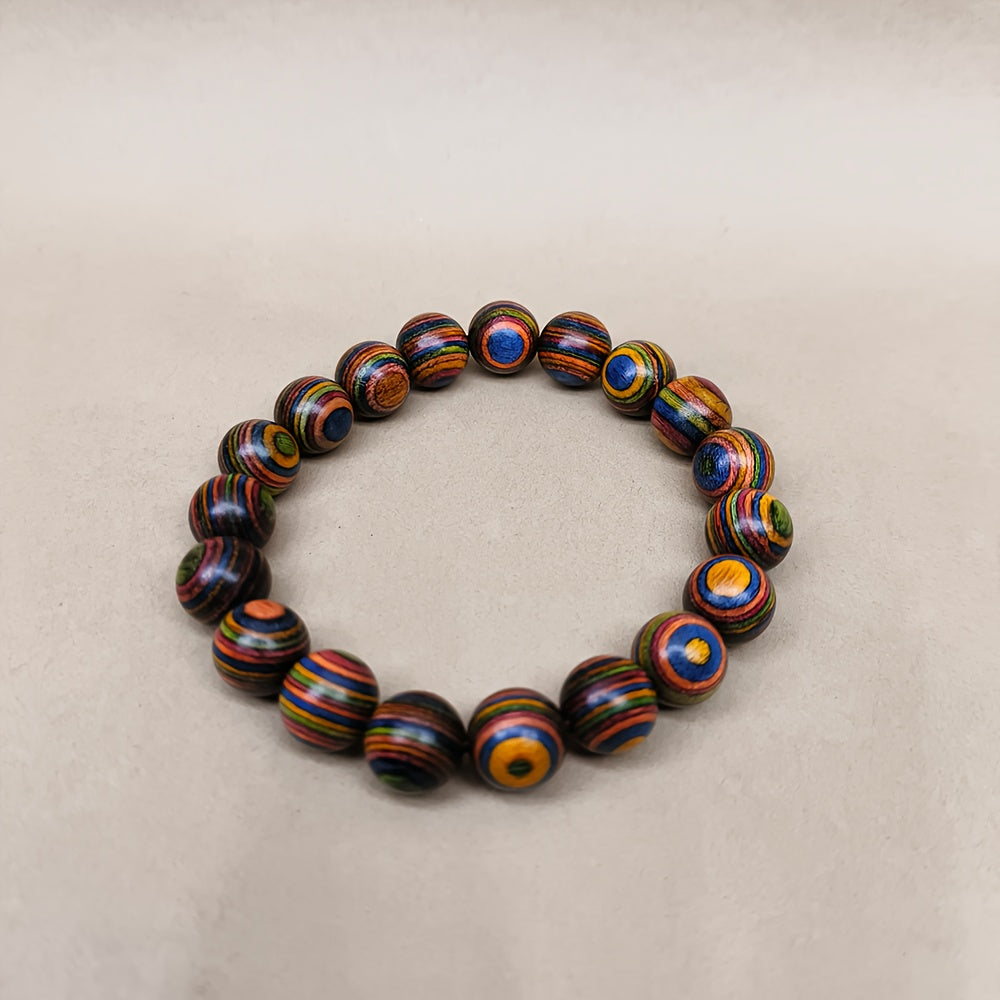 Multicolor Wooden Bead Bracelet 10cm Unisex Street Style Natural Wood Wristband