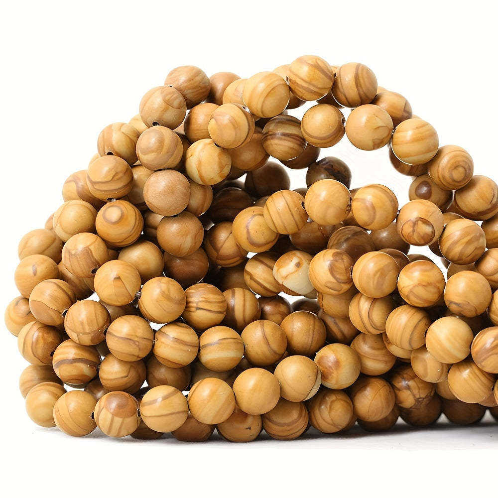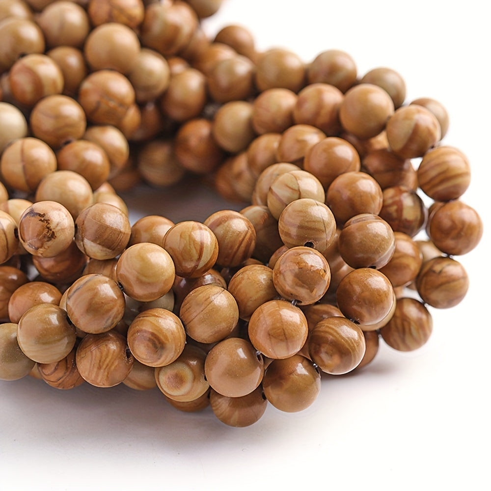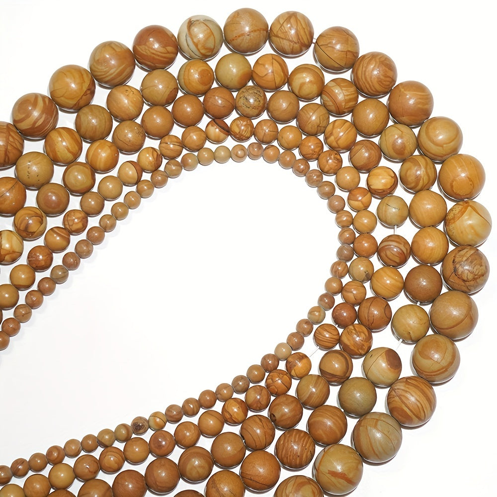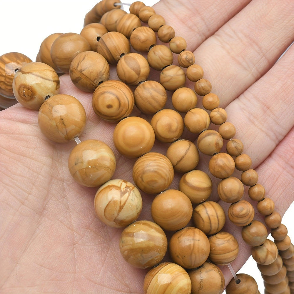 This set includes 60pcs of 6mm, 46pcs of 8mm, and 36pcs of 10mm natural wood grain stone beads, perfect for creating bracelets, necklaces, and earrings.