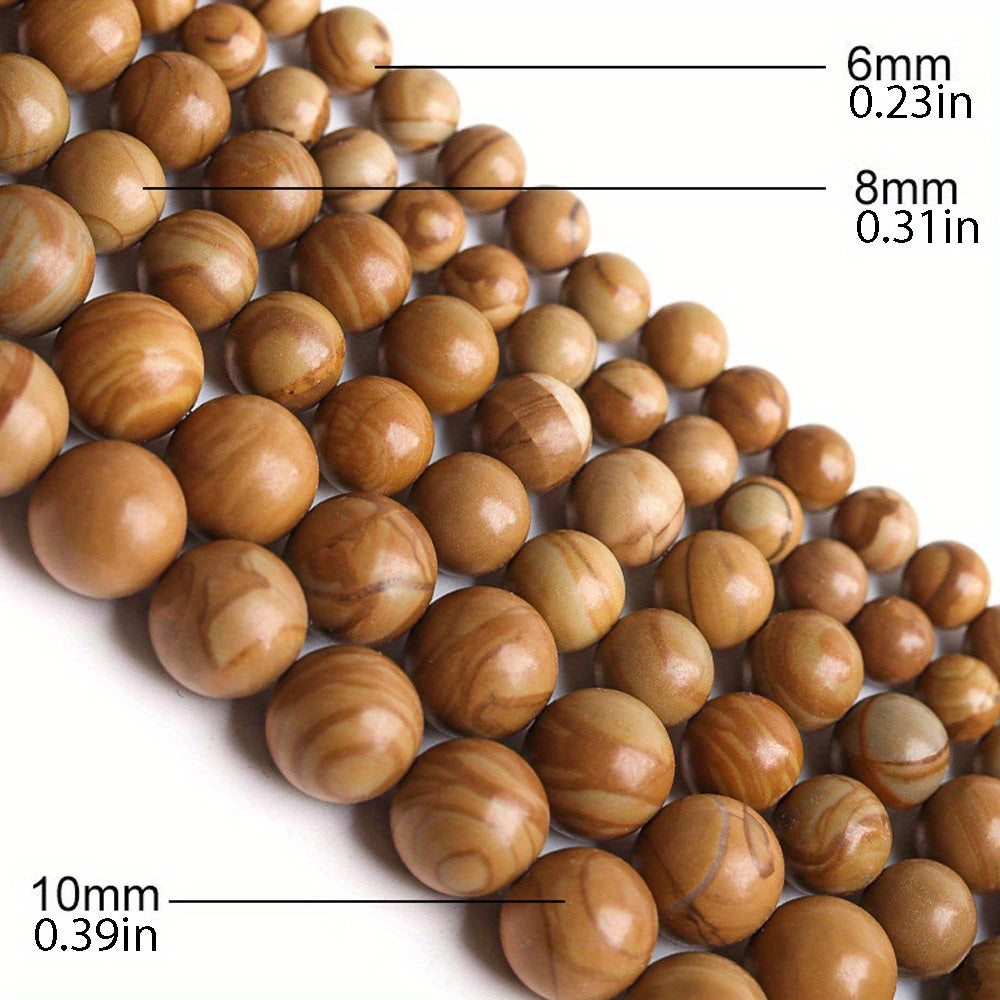 • 60pcs of 6mm, 46pcs of 8mm, and 36pcs of 10mm natural wood grain stone beads