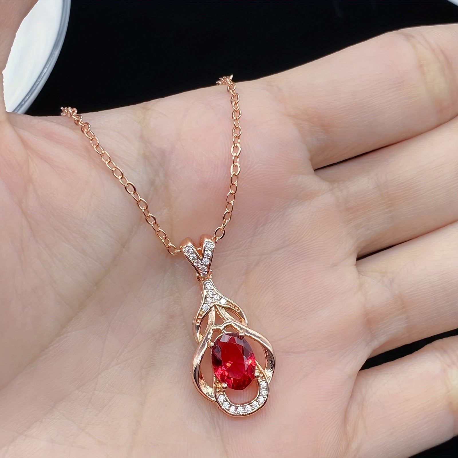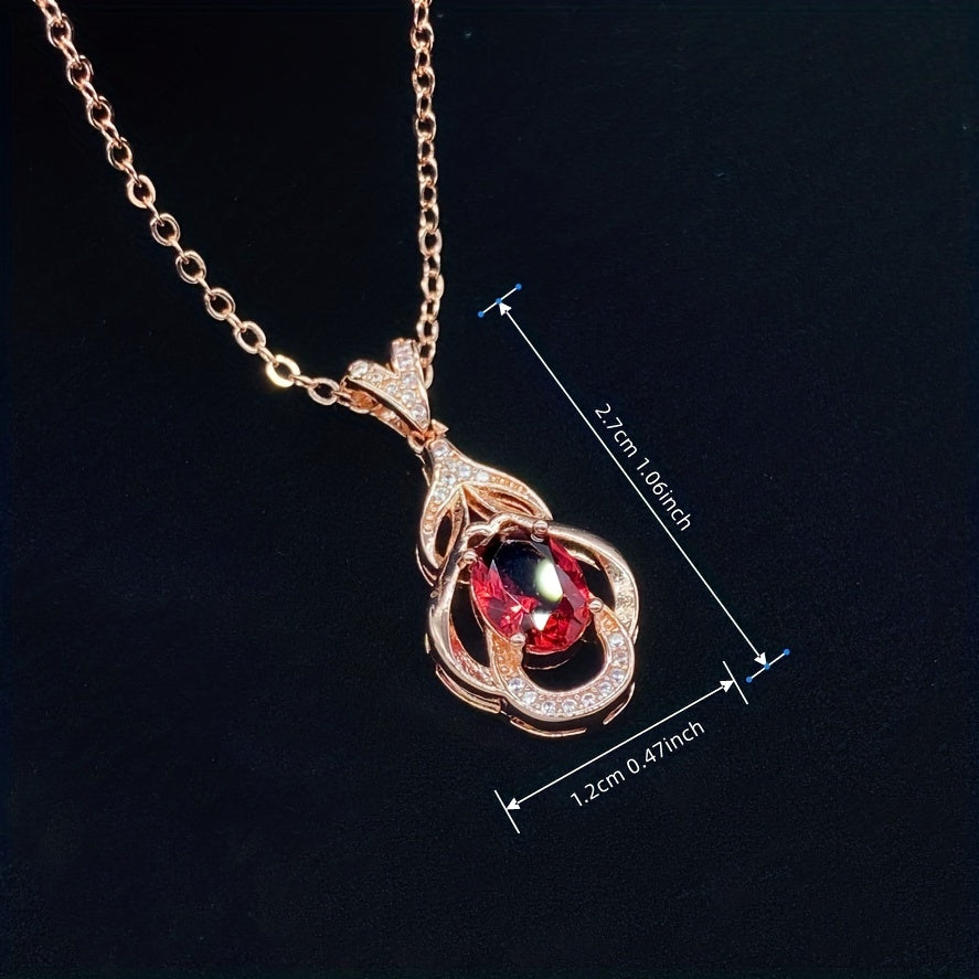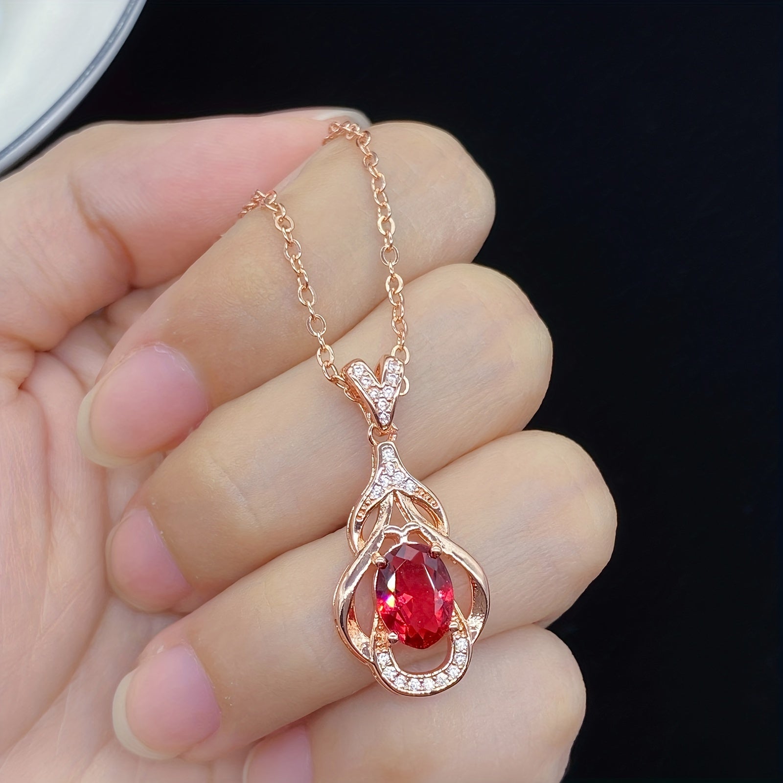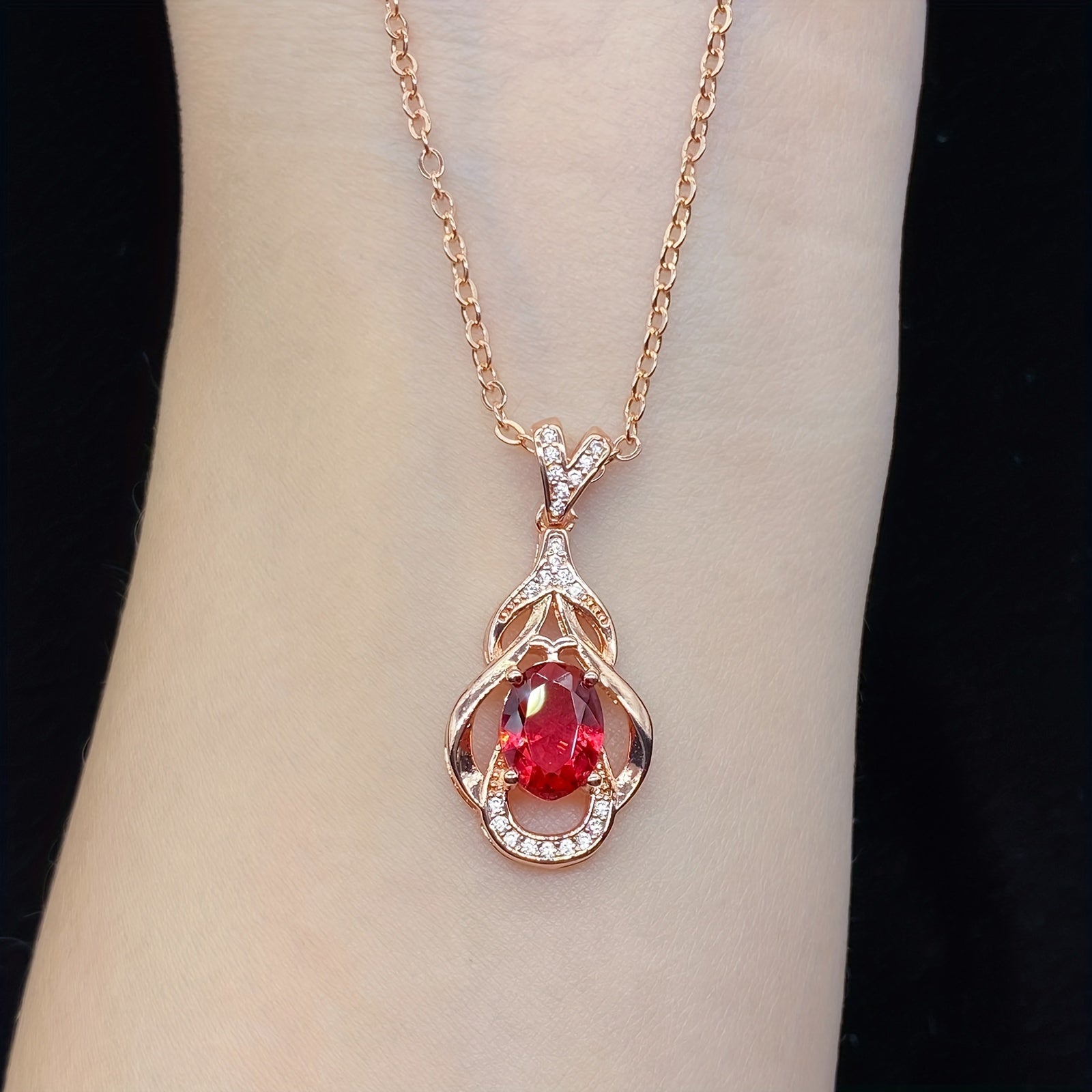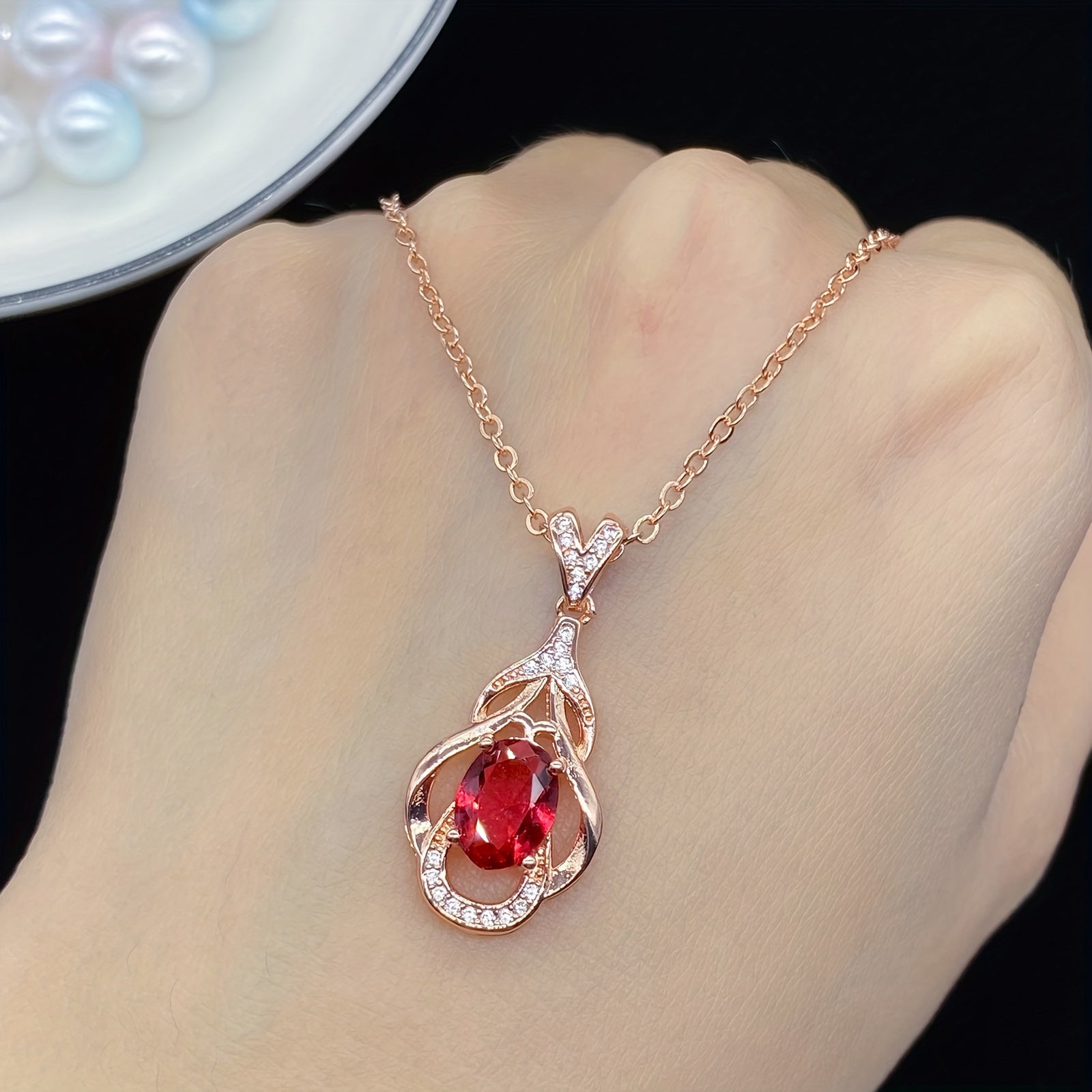 This stunning necklace features an oval garnet pendant with a vibrant red tourmaline. Perfect accessory for any occasion.