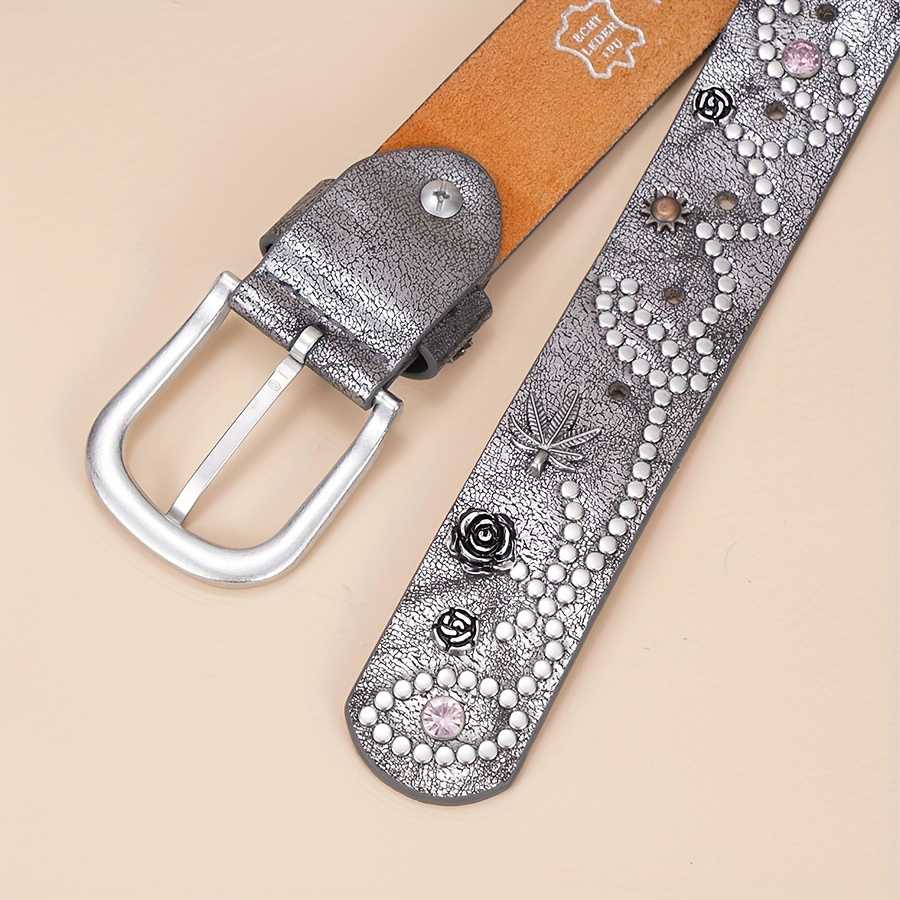 Bling Queen ist eine erschwingliche Modeschmuckmarke mit verschiedenen Produkttypen wie Armbändern, Halsketten, Ohrringen, Ringen usw., geeignet für Frauen, Männer und Kinder. Der mit Blättern und Nieten besetzte Vintage-Ledergürtel in Übergröße für den Y2K-Stil ist ein auffälliges Accessoire, das die Essenz des Retro-Stils einfängt und gleichzeitig moderne Vielseitigkeit bietet. Dieser aus hochwertigem Echtleder gefertigte Gürtel verfügt über eine glatte Textur und ein luxuriöses Tragegefühl. Das Leder wurde aufgrund seiner Fähigkeit ausgewählt, schön zu altern, sodass es über Jahre hinweg ein Grundbestandteil Ihrer Garderobe bleibt. Das auffällige Blätterdesign verleiht eine organische Note und bringt von der Natur inspirierte Elemente in Ihr Modeensemble. Die Vintage-Ästhetik steht für zeitlosen Stil, wodurch er zu einer großartigen Ergänzung für jedes Outfit wird. Strategisch platzierte Nieten verstärken den ausgefallenen Reiz des Gürtels und verleihen ihm ein punkinspiriertes Flair, das auffällt. Diese Verzierungen erzeugen visuelles Interesse und Struktur und machen ihn zu einem Gesprächsthema. Dieser Gürtel wurde mit Blick auf Inklusivität entworfen und bietet erweiterte Größenoptionen und gewährleistet so eine bequeme und schmeichelhafte Passform für alle Körpertypen.Melden Sie sich an, um Ihr Bling Queen-Willkommensgeschenk zu erhalten und als Erster über Werbegeschenke, VIP-Angebote und mehr informiert zu werden