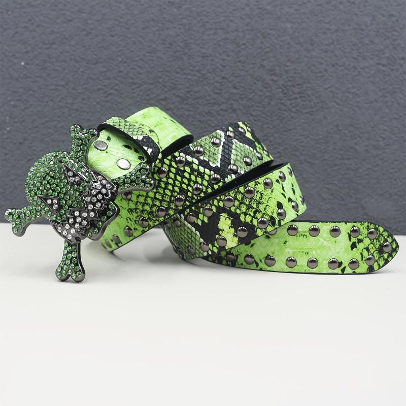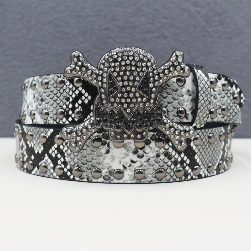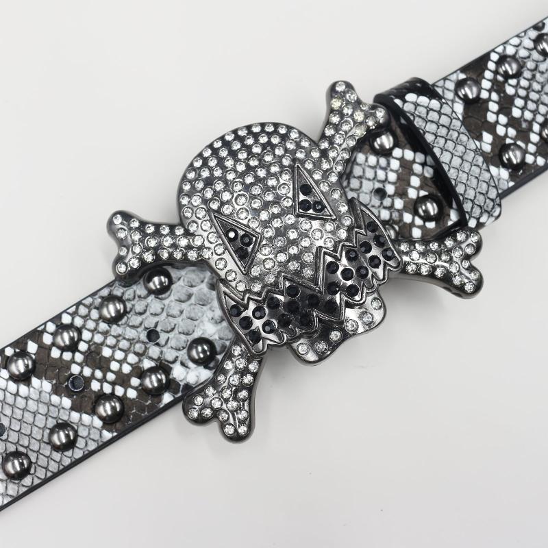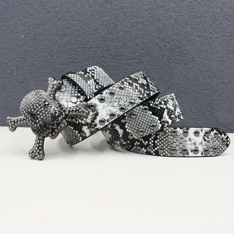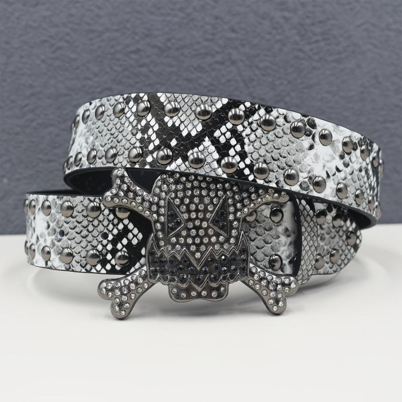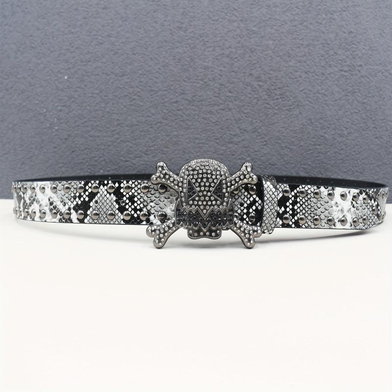 Add a touch of edgy style to your outfit with this punk rhinestone rivet belt featuring a snake light beige pattern faux leather strap and an animal buckle. Perfect for hip hop, western, and streetwear looks.