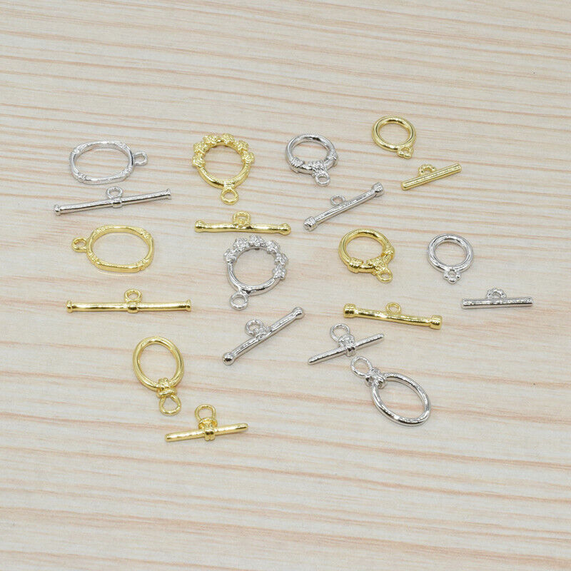 Enhance your DIY jewelry projects with these high-quality, pure copper OT toggle clasps. Available in golden or silvery finishes, they are perfect for creating bracelets and necklaces.