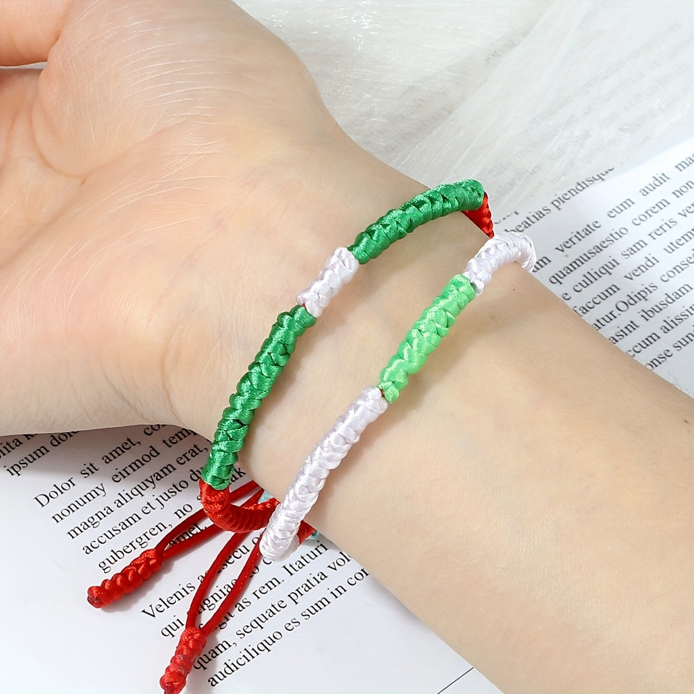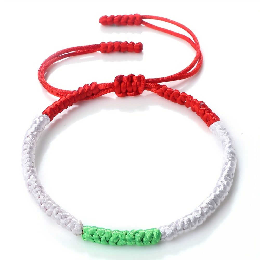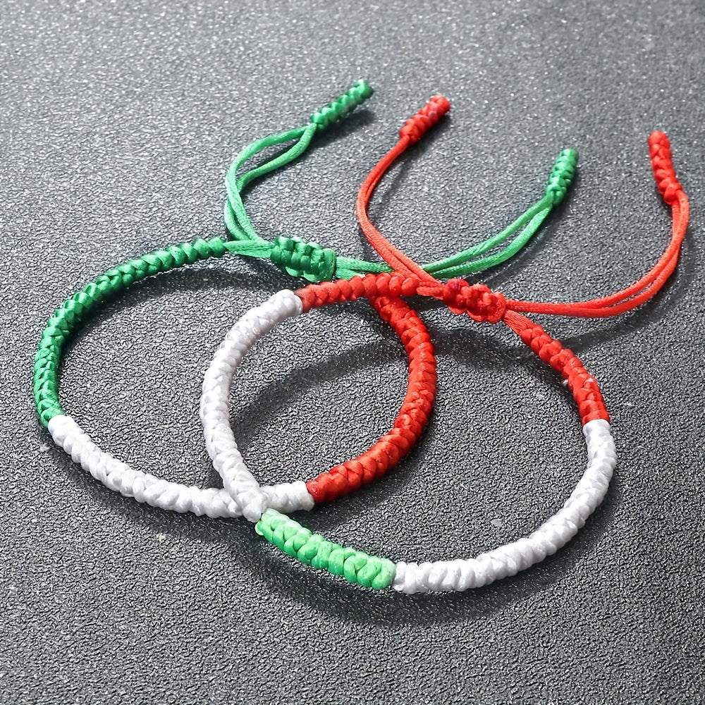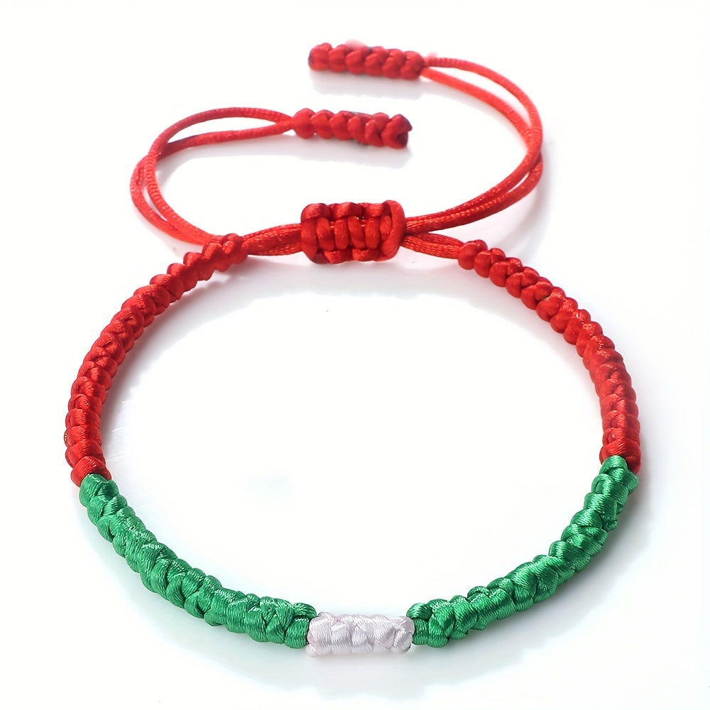 This bracelet is a perfect gift for couples, friends, or loved ones. It features red, green, and spliced pure wire braiding in an adjustable ethnic style.