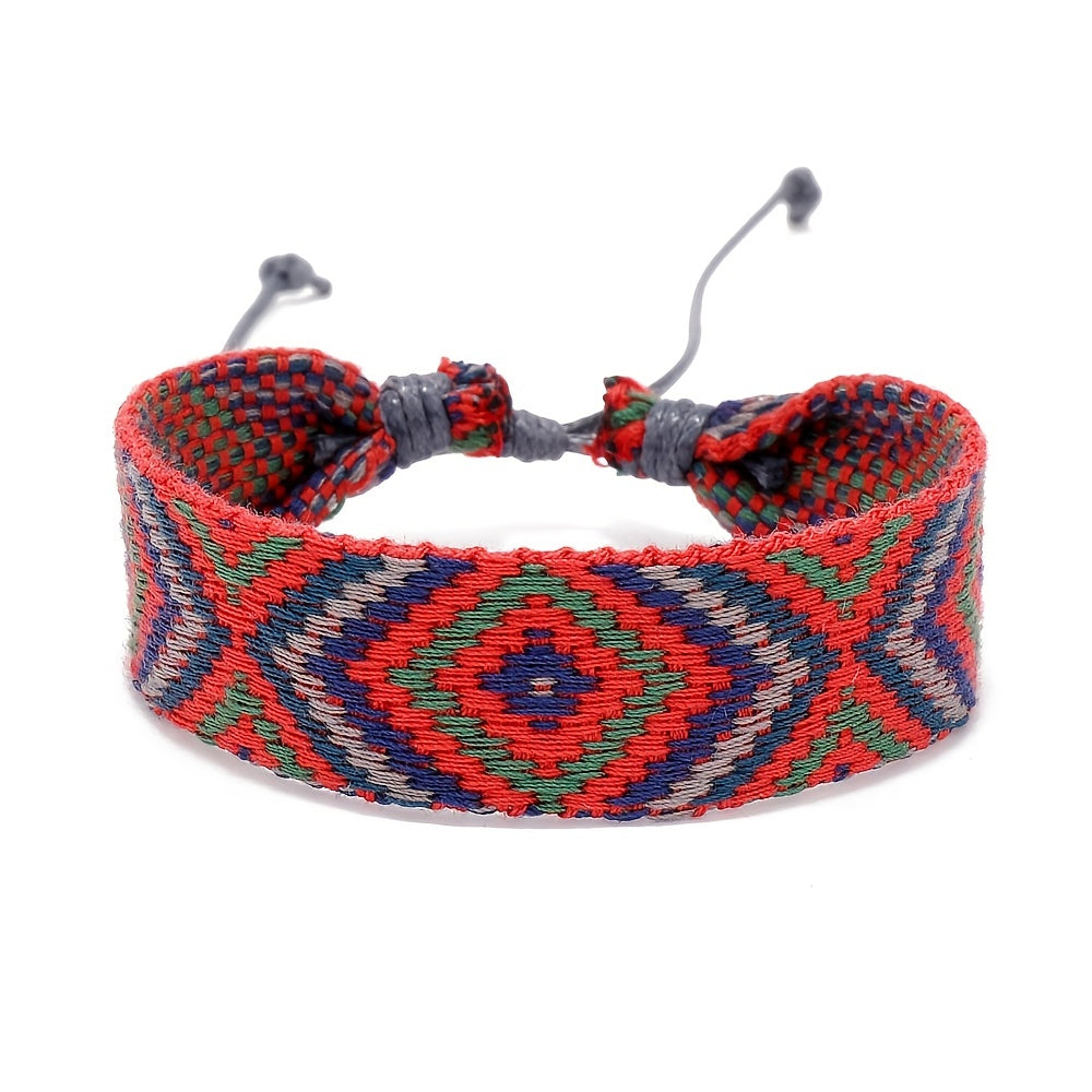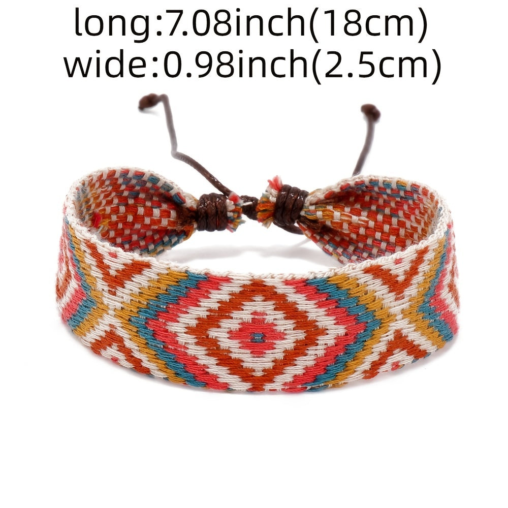 Elevate your style with this retro argyle plaid ethnic style friendship rope braided hand rope wide bracelet, reflecting a unique literary charm.
