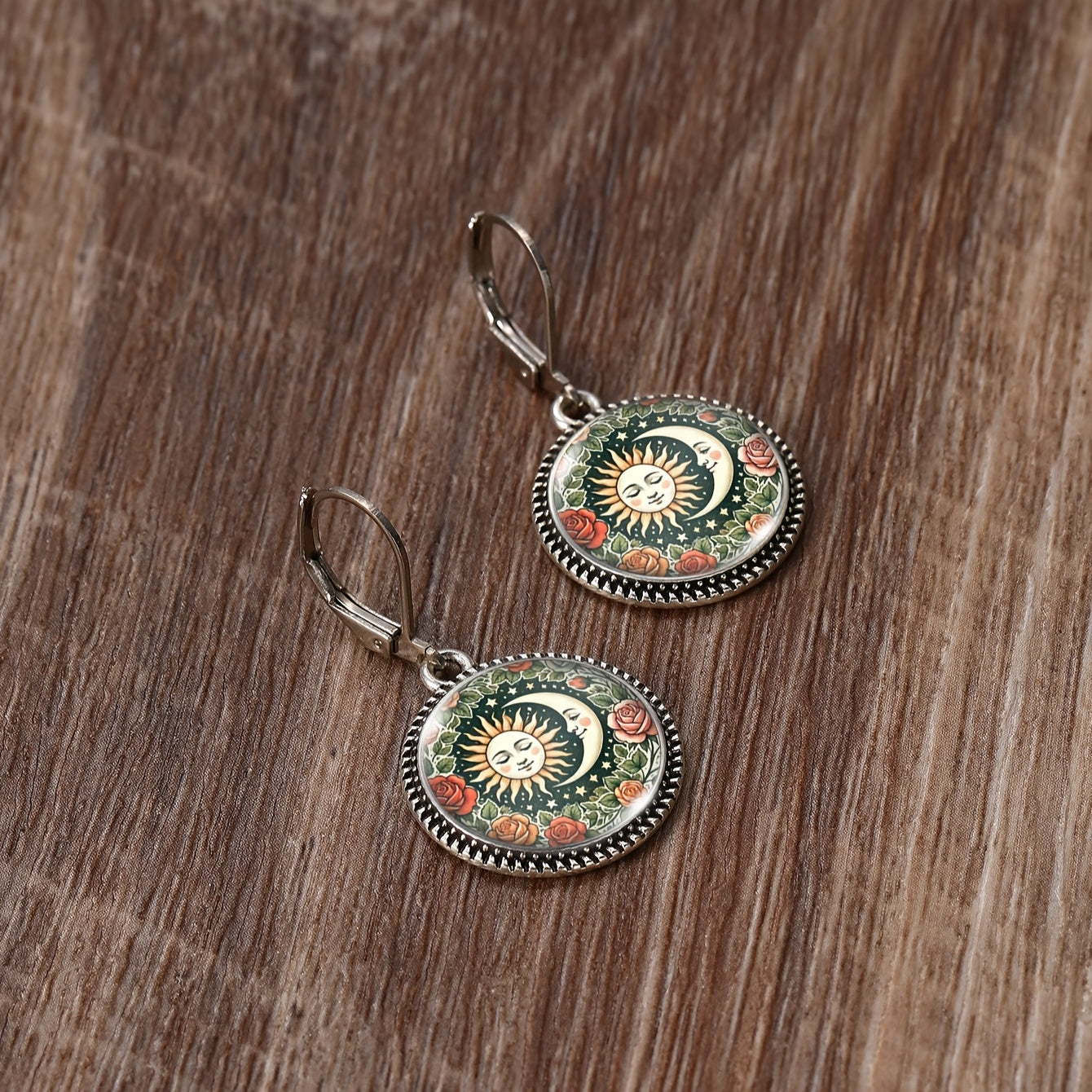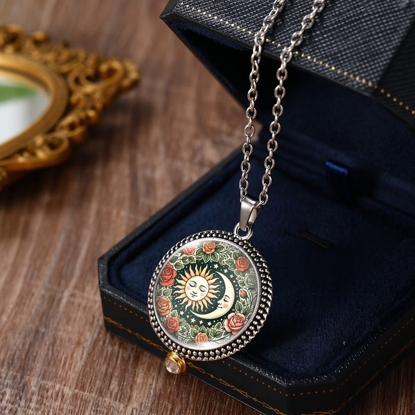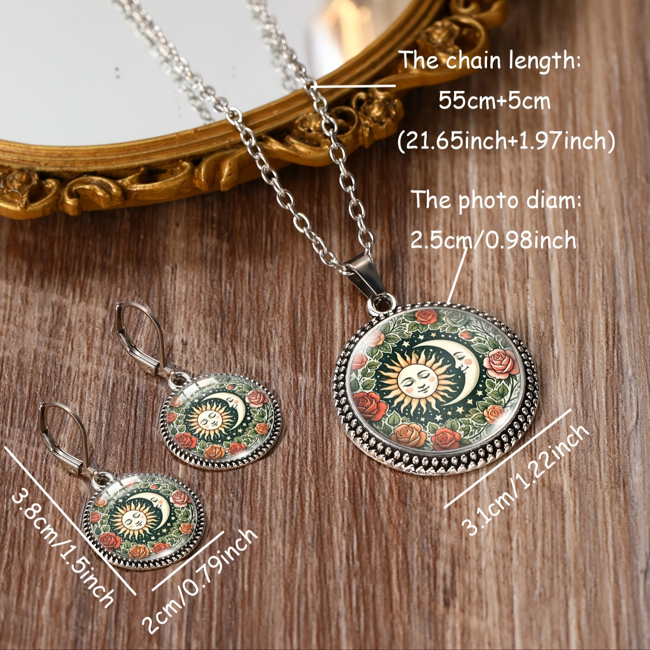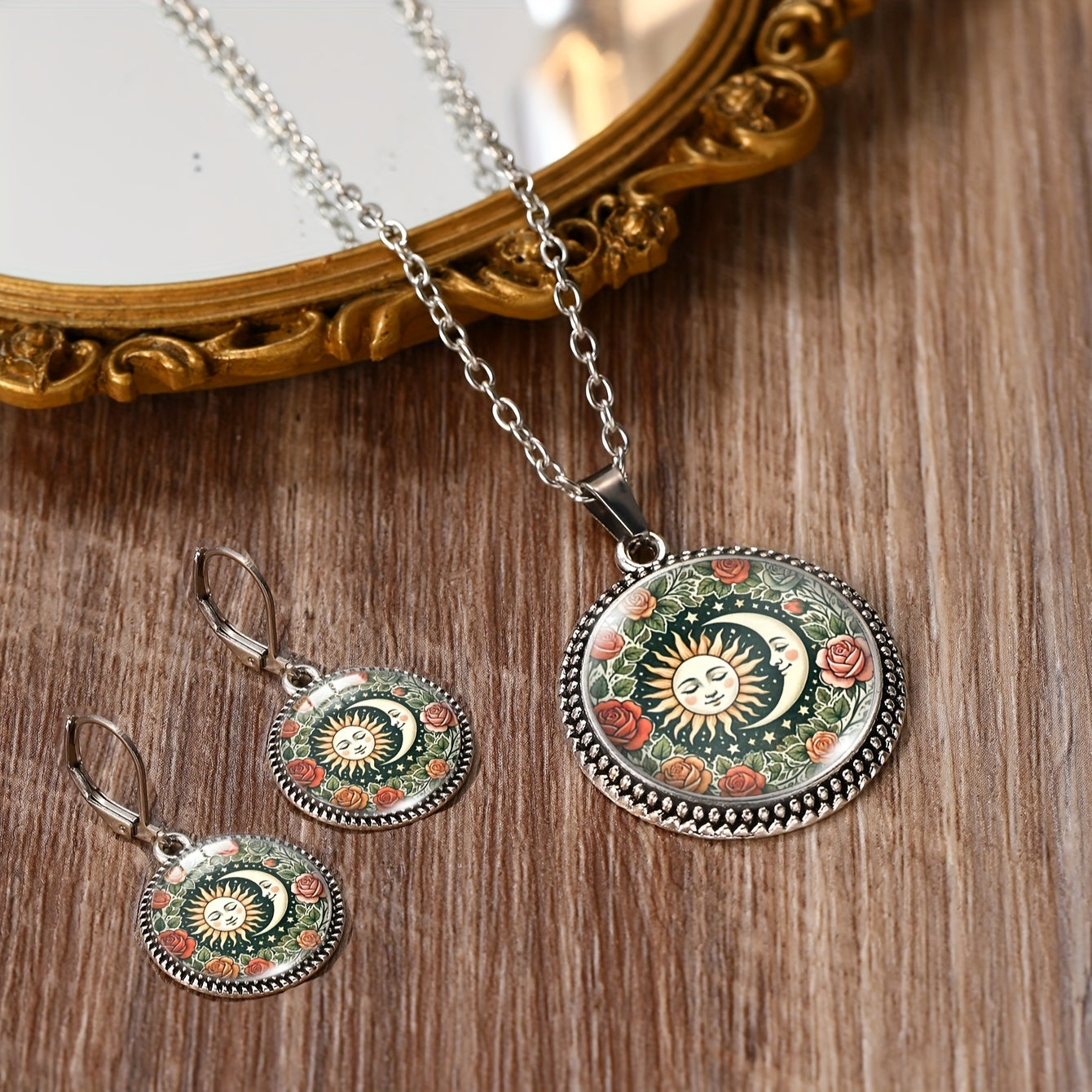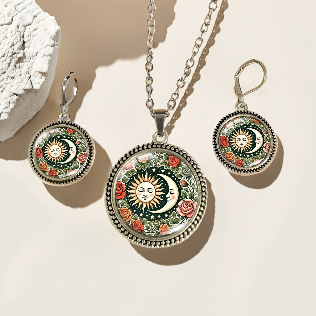 This 3-piece jewelry set features a retro style design with sun, moon, and rose motifs. Made for men and women, this set is durable and stylish.