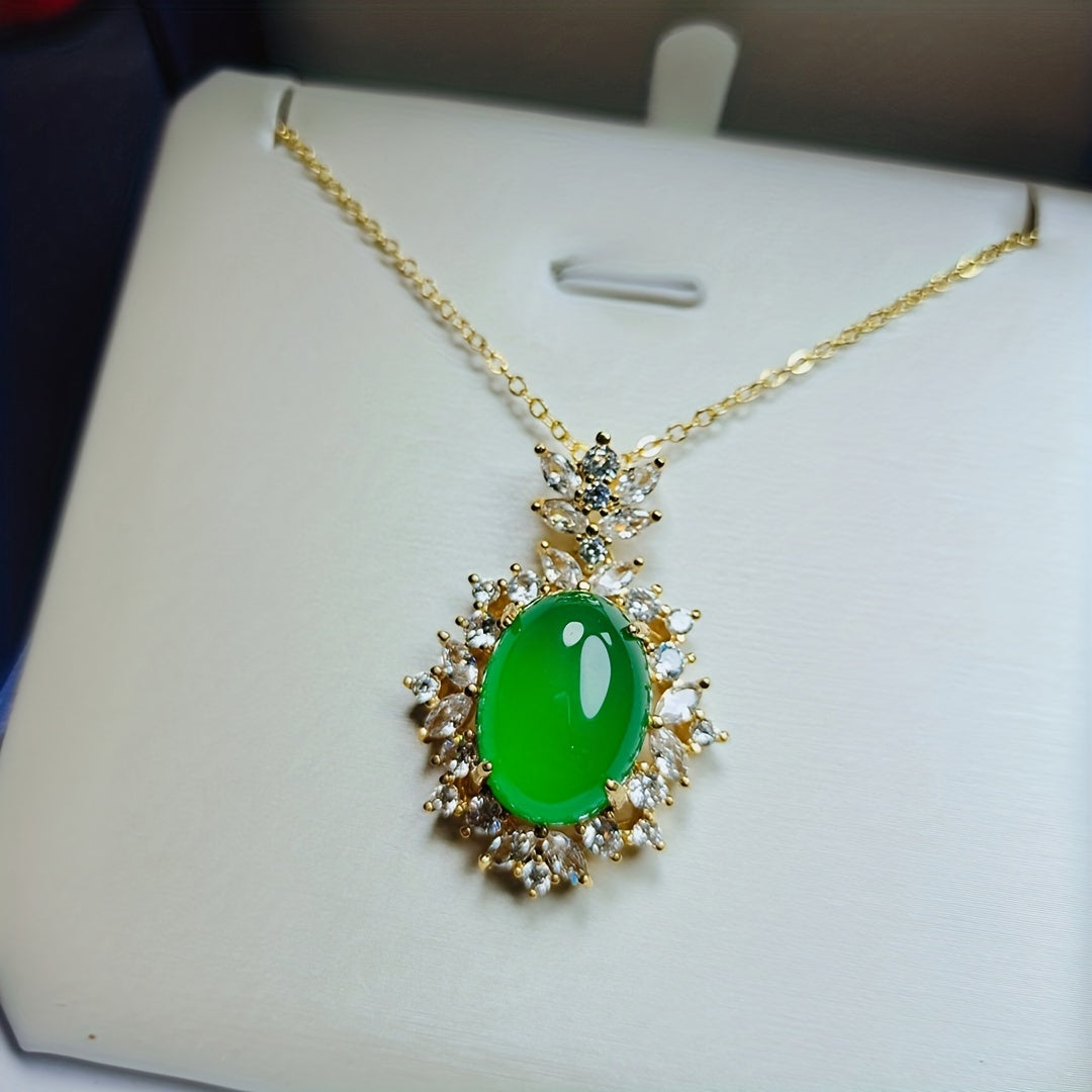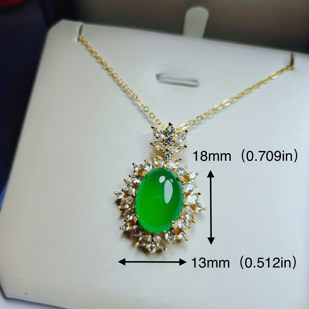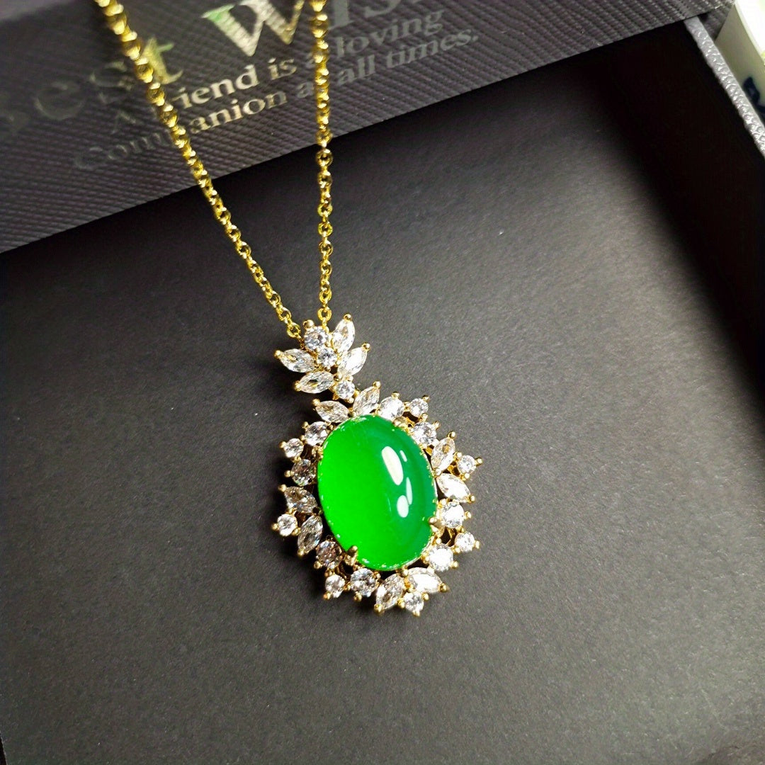 Elevate your style with this fashionable necklace featuring a green agate oval pendant adorned with rhinestone accents. Perfect for adding a touch of elegance to any outfit.