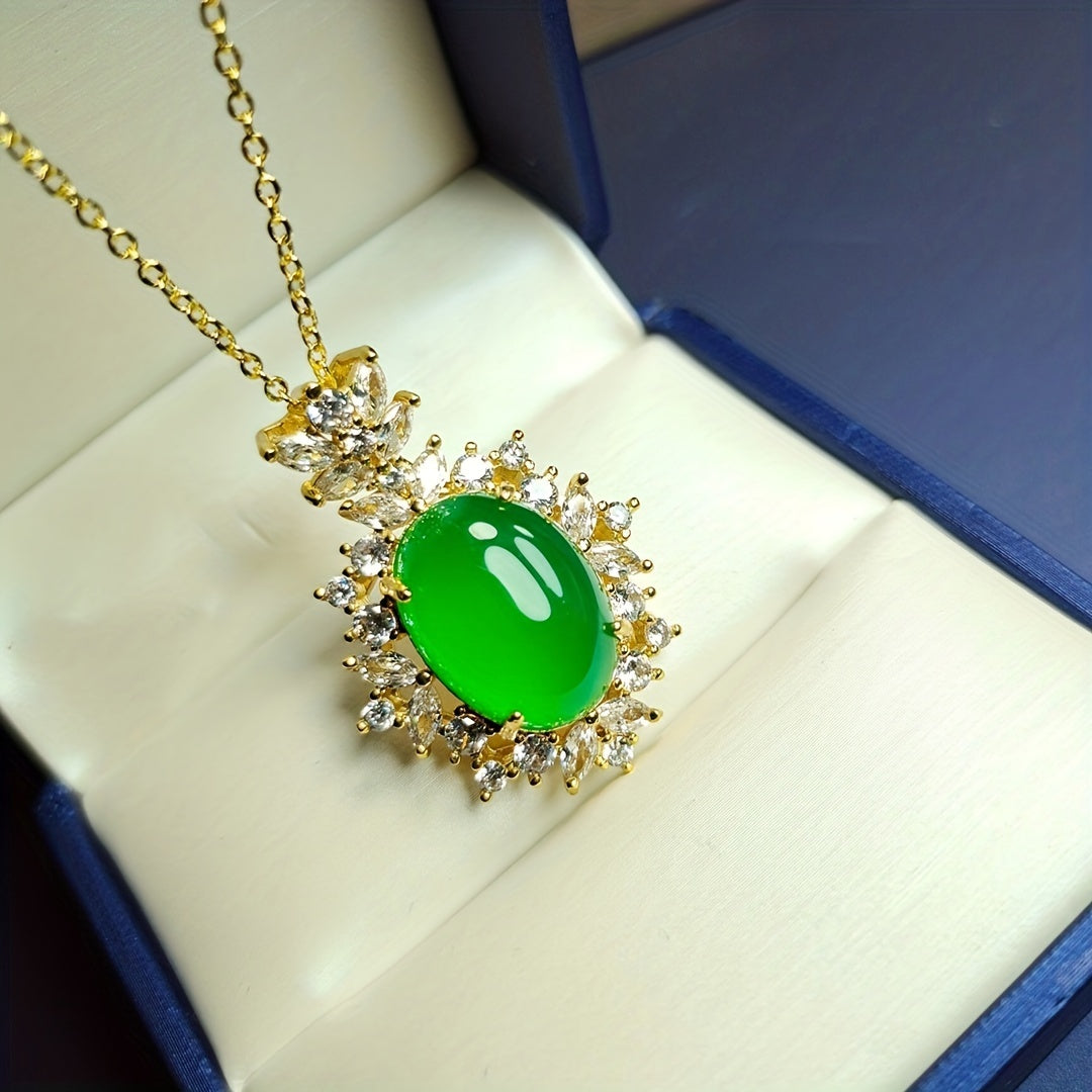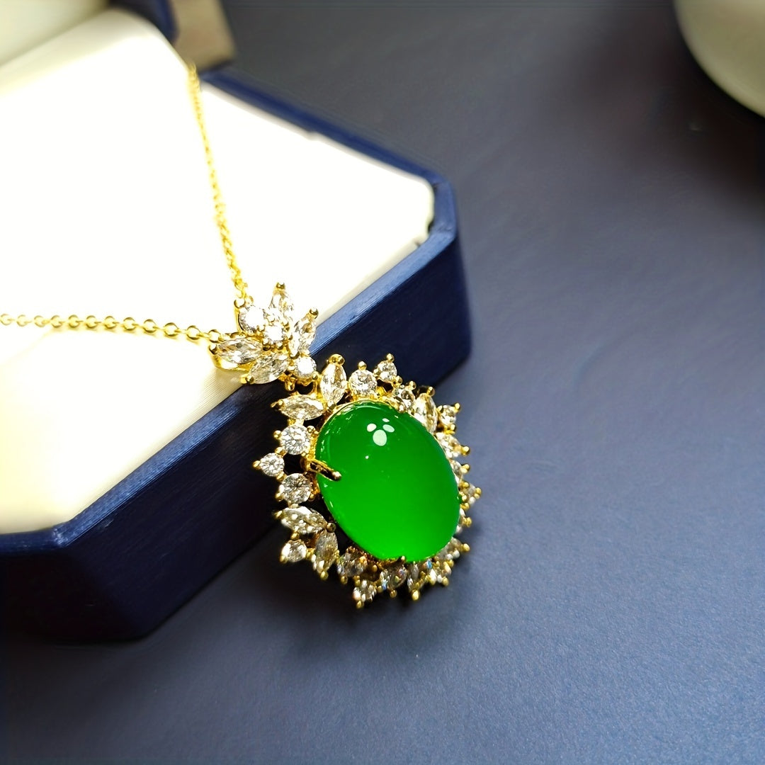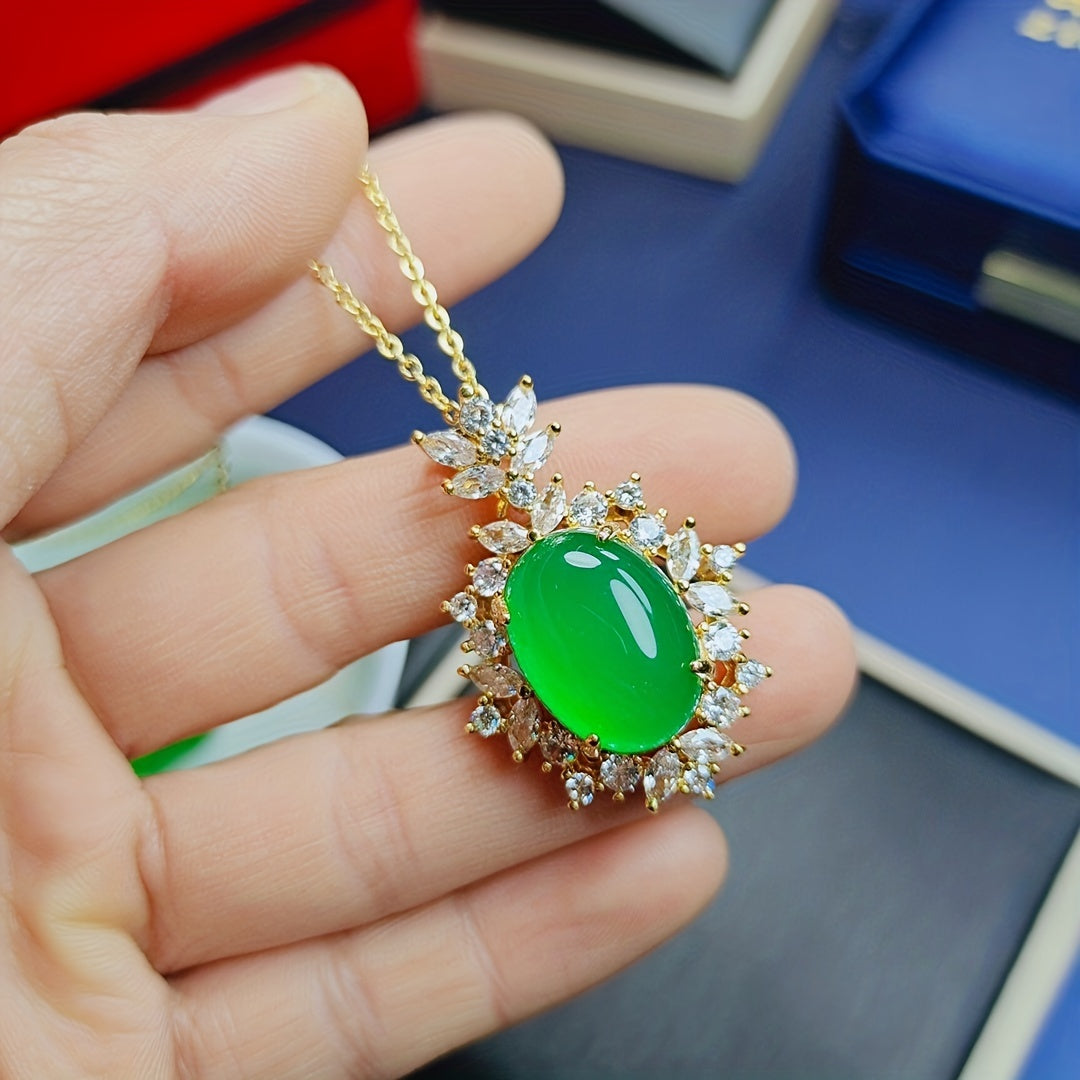 Elevate your style with this fashionable necklace featuring a green agate oval pendant adorned with rhinestone accents. Perfect for adding a touch of elegance to any outfit.
