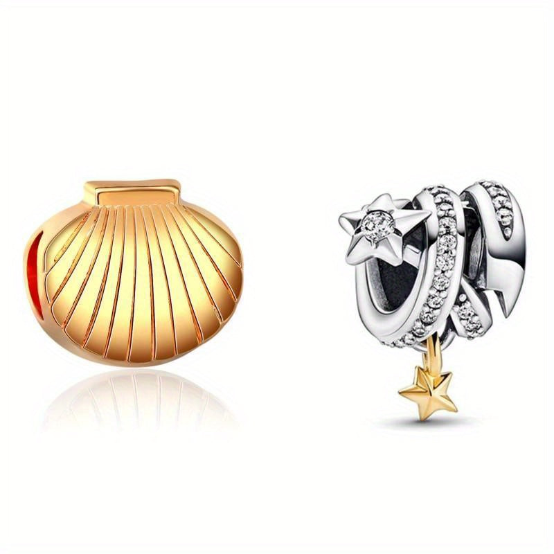 Add a touch of sparkle to your DIY bracelet or necklace with these 2pcs rhinestone shooting star and shell alloy pendants. Perfect for creating unique jewelry pieces.