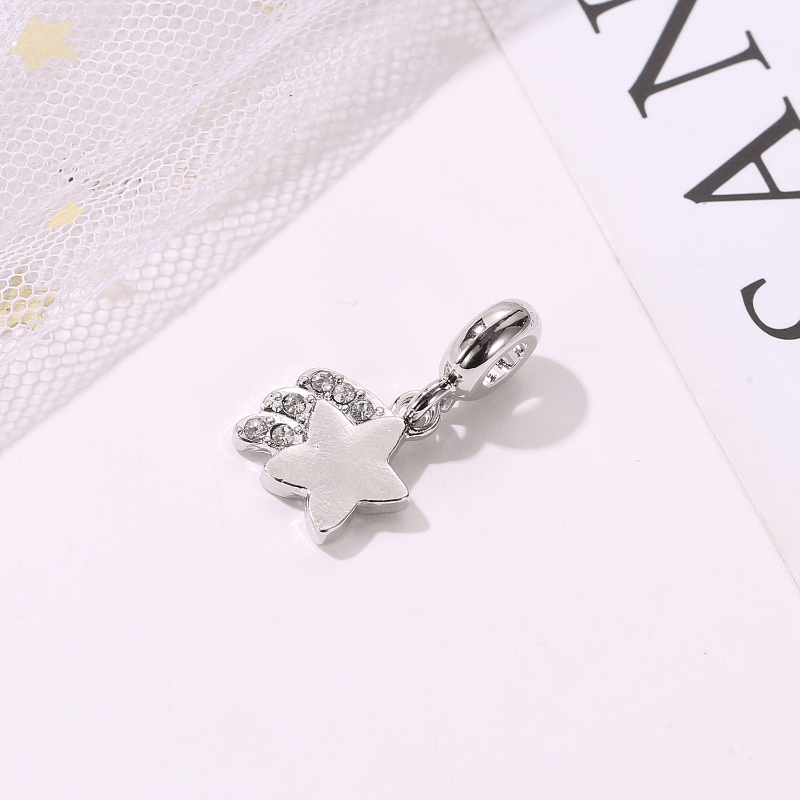 Add some sparkle to your DIY bracelet with this rhinestone and star decor silvery pendant bead. Perfect for creating unique jewelry pieces.