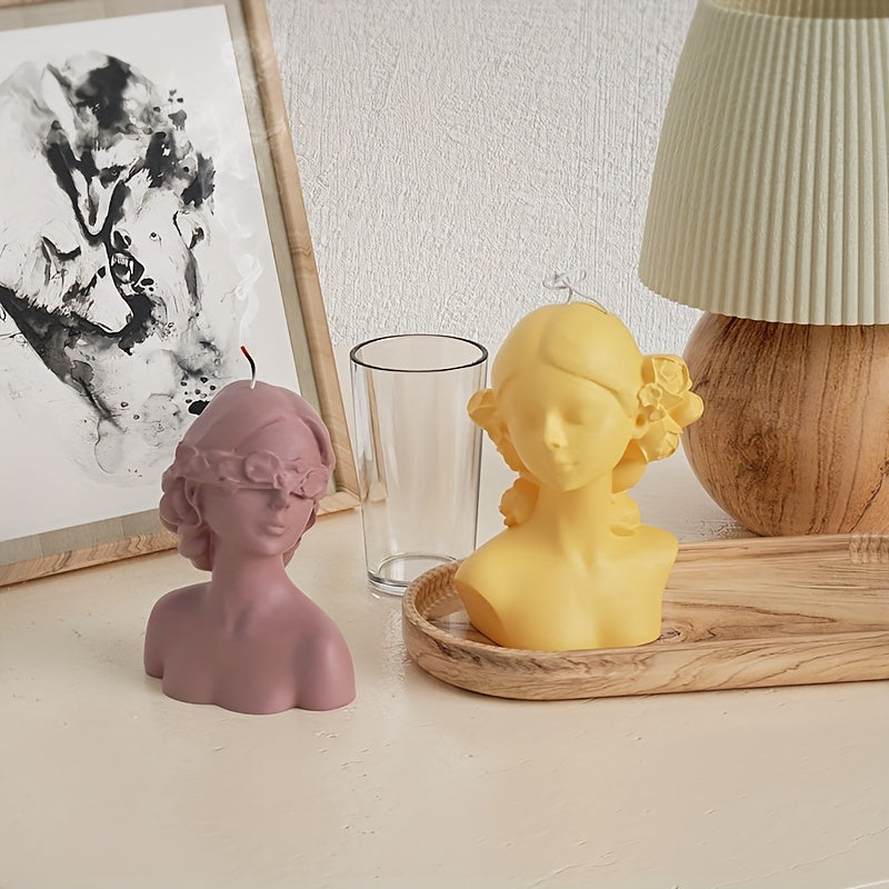 Create a beautiful blindfolded girl with closed eyes surrounded by rose flowers using this silicone mold. Perfect for making aromatherapy candles and drop glue crafts.