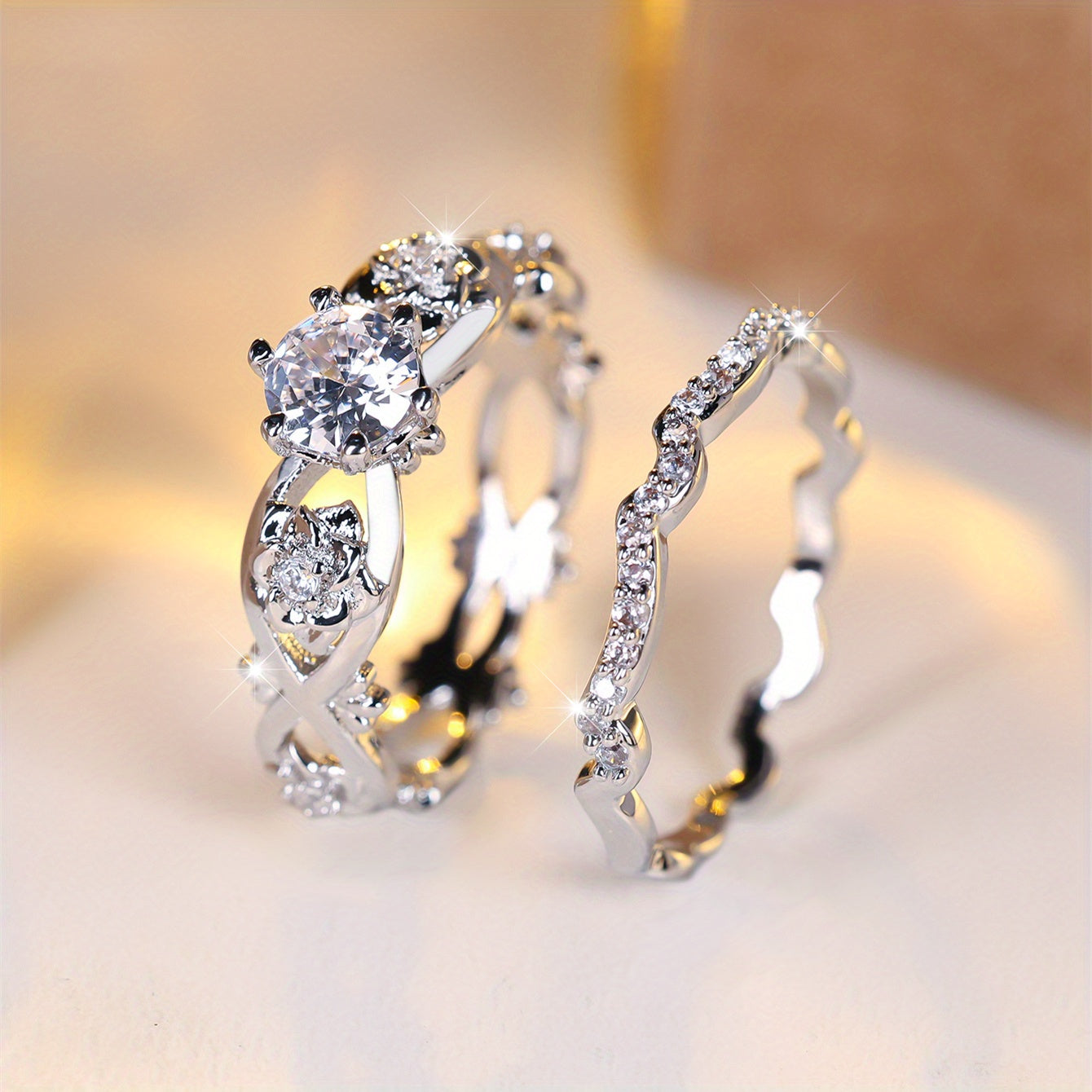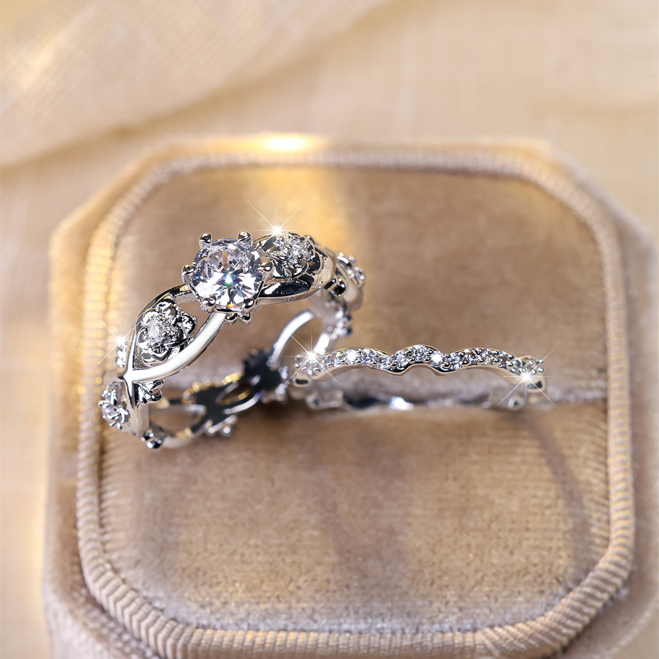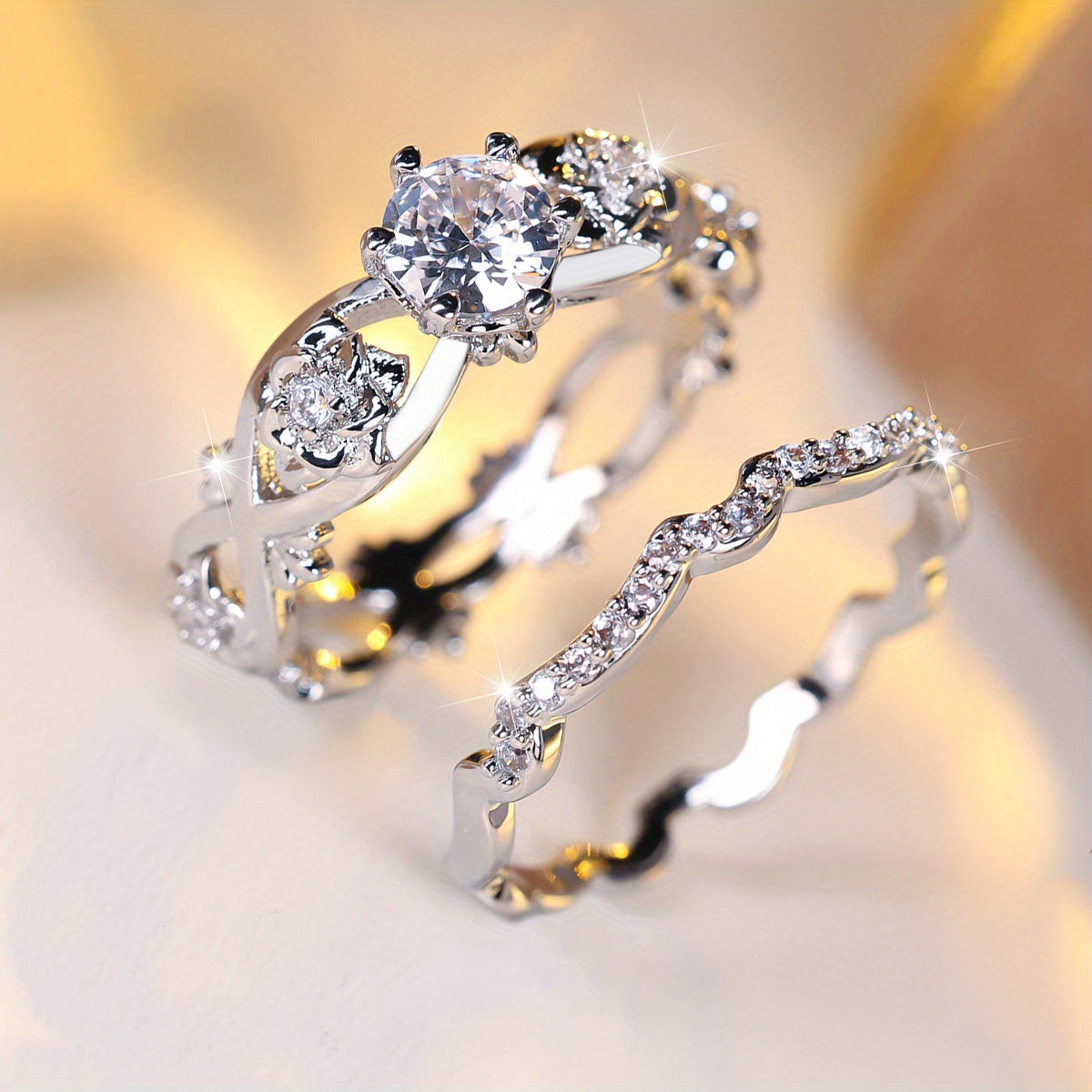 Express your love with these beautiful rose flower wave rings adorned with synthetic zircon beads. Perfect for couples to symbolize their bond.