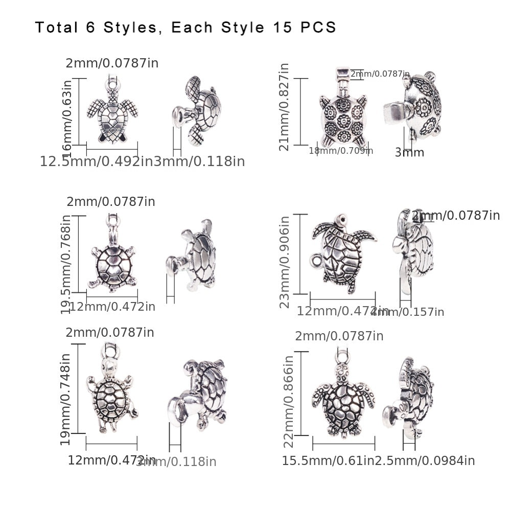 • Includes 90pcs of 6 styles sea turtle shape alloy pendants
