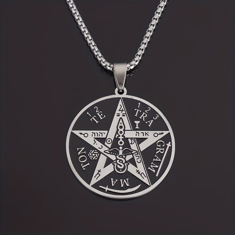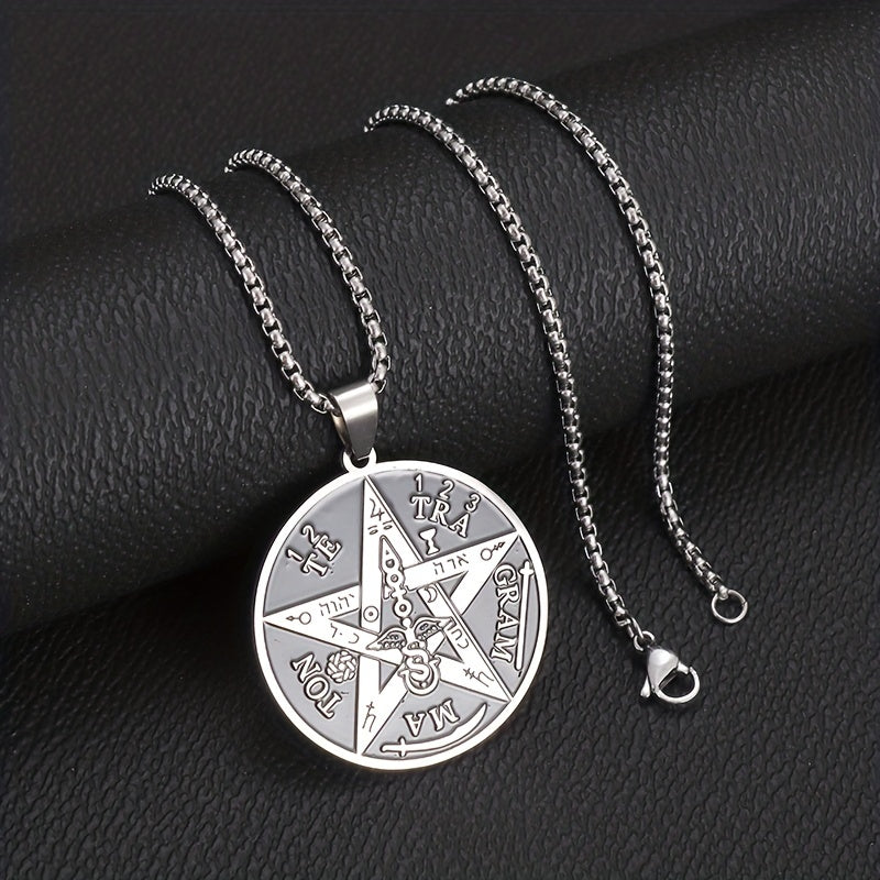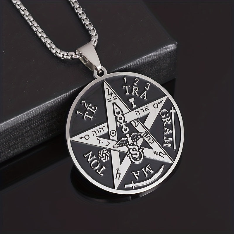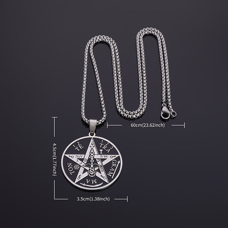 This mystical amulet pendant features a Pentagram Seal with Hebrew Letters & Astrological Symbols. Durable and stylish jewelry that's perfect for everyday wear.