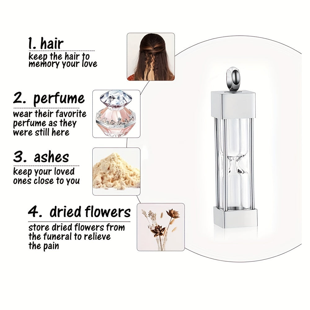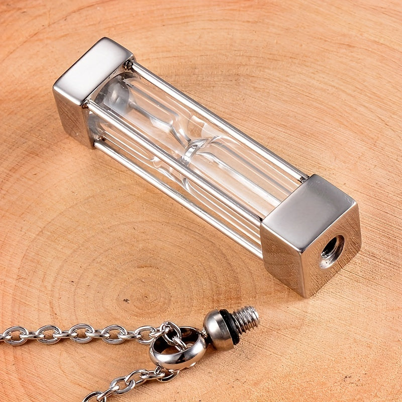 Keep your loved one close with this timeless timer memorial pendant necklace featuring a minimalist design with clear sands of time in a glass bulb.