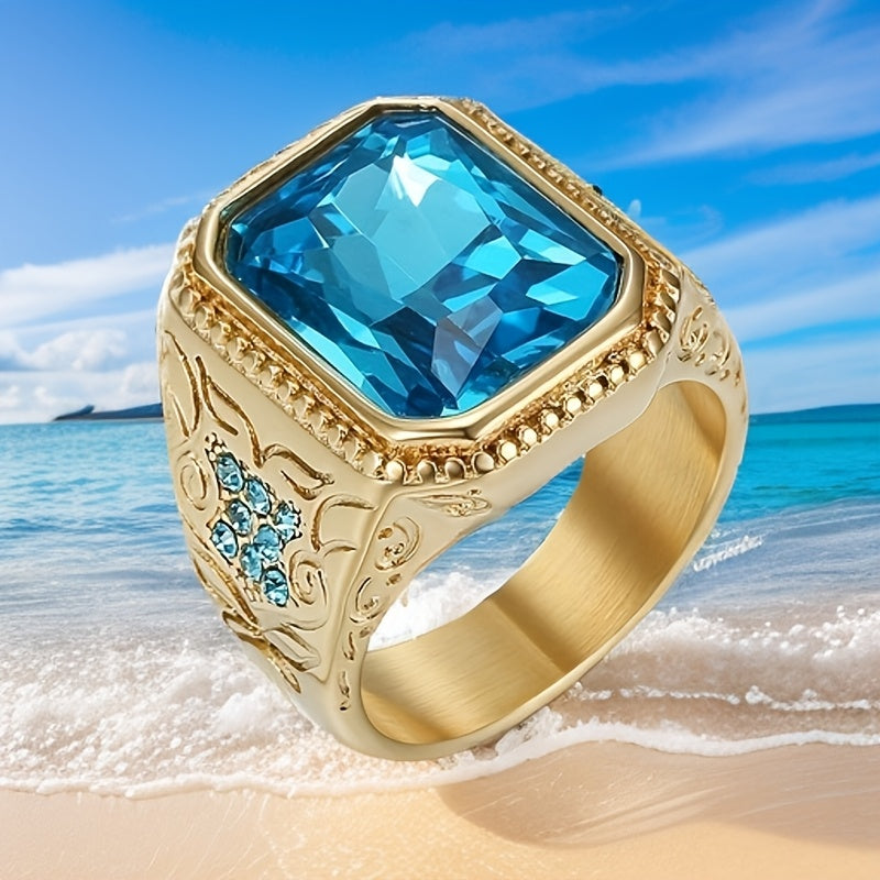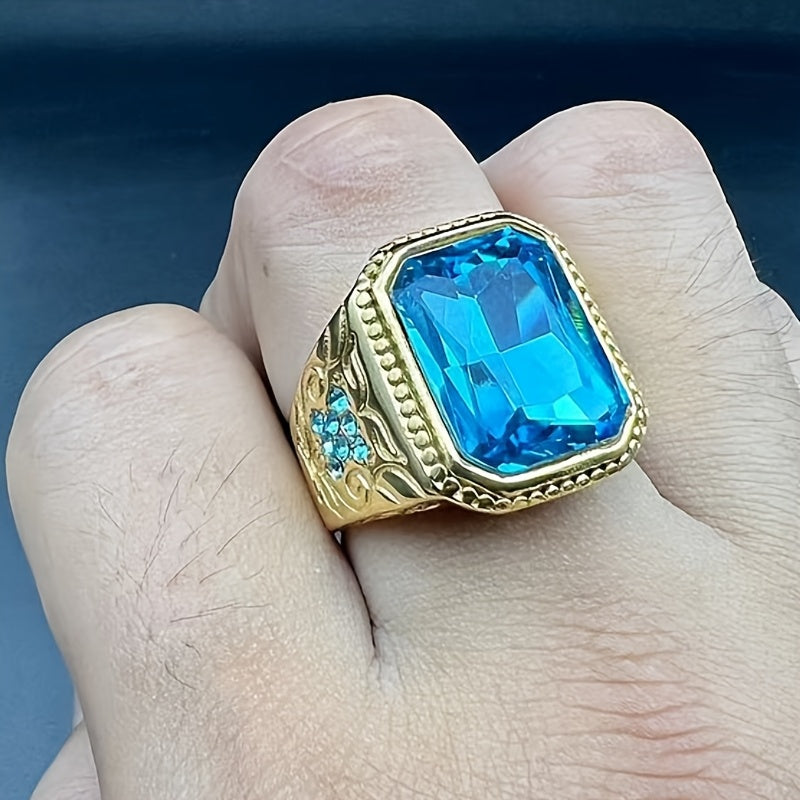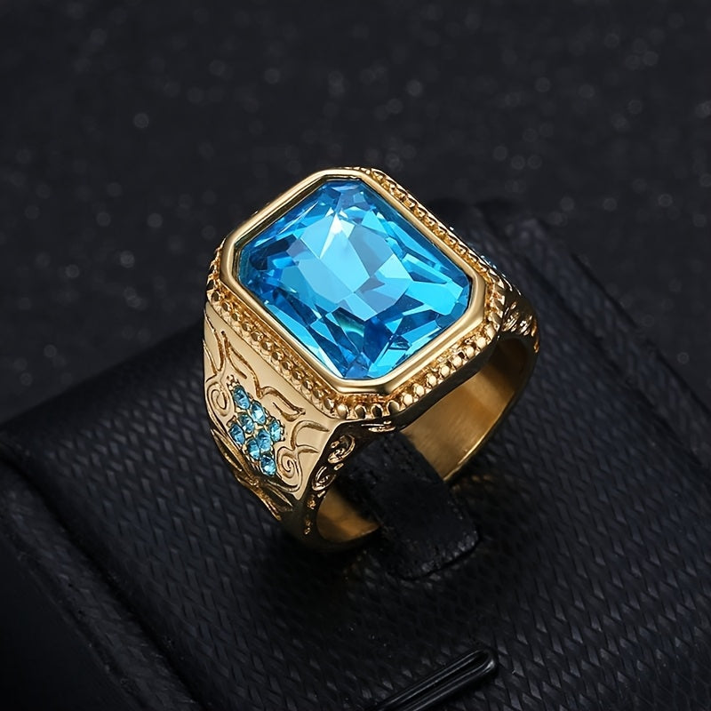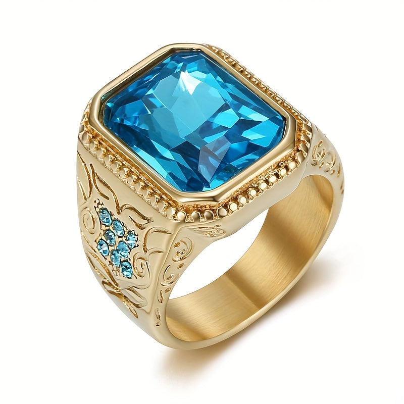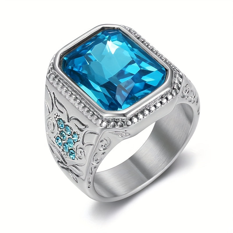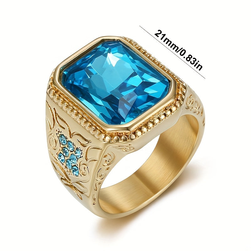 This ring is a perfect gift for Valentine's, Father's Day, or campus events. It features a faux gemstone in the center surrounded by ice rhinestones. Suitable for both men and women.