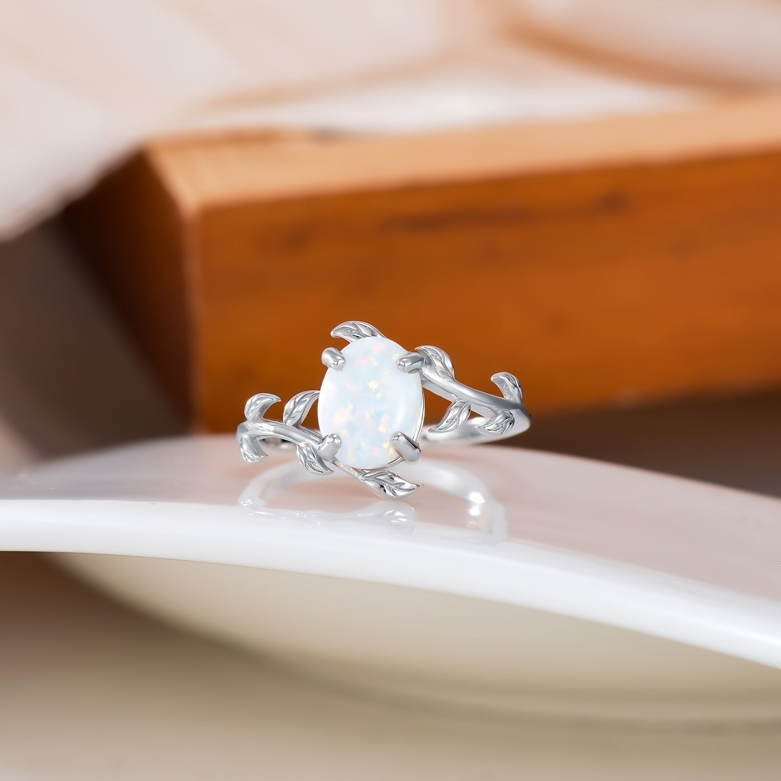 Elegant and stunning Opal ring crafted in sterling silver, featuring a unique leaf design. Perfect as a gift for women who appreciate fine jewelry.