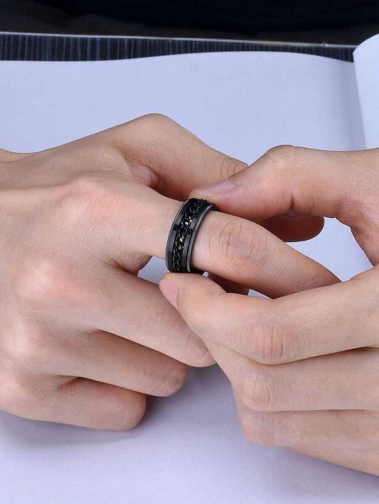 Stylish Black Stainless Steel Spinner Ring For Men