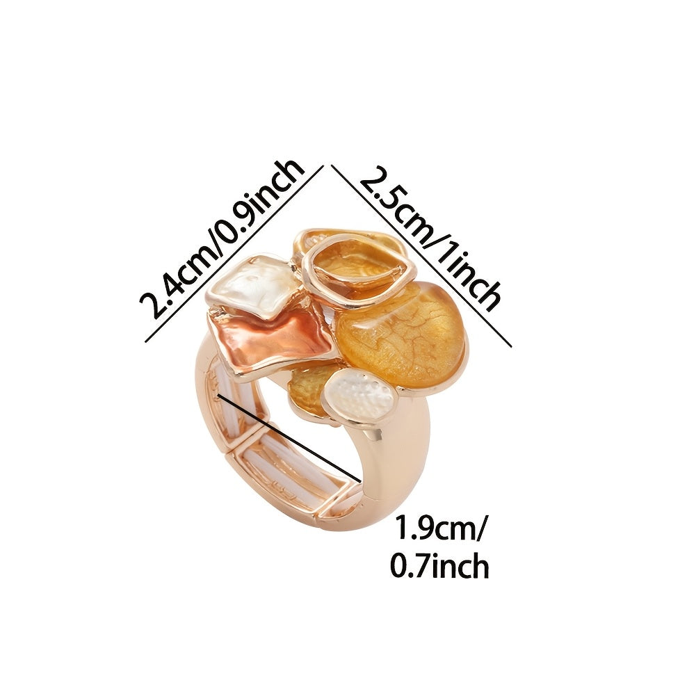 This vintage-inspired ring features colorful enamel detailing and is made of durable zinc alloy. It has a stretchable and adjustable design that fits most finger sizes. Perfect for adding a bohemian touch to your outfit.