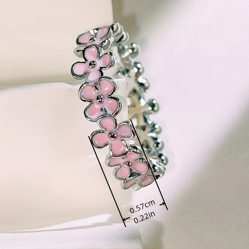 Sweet Pink Flower Ring for Women's Daily Wear