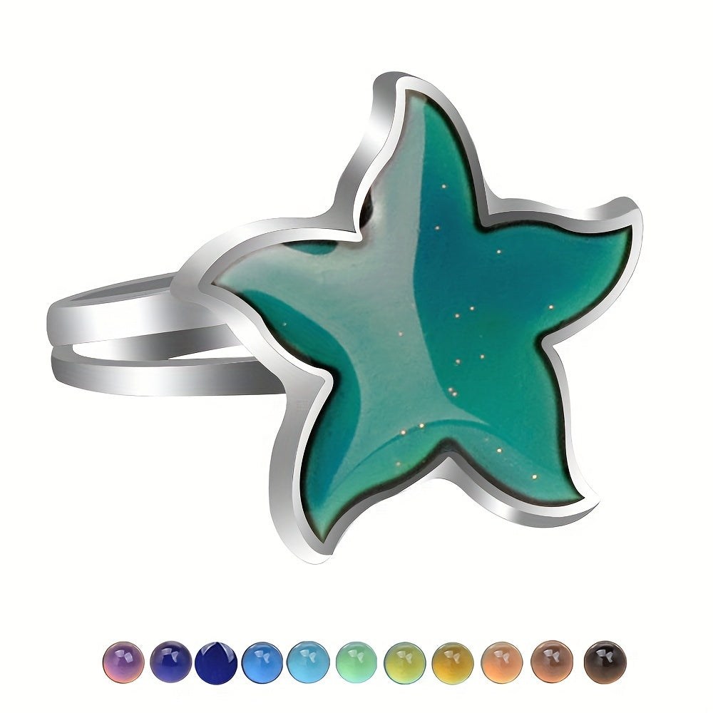 Stay stylish with this adorable starfish design ring that brings warmth to your heart. Features an adjustable opening for a comfortable fit.
