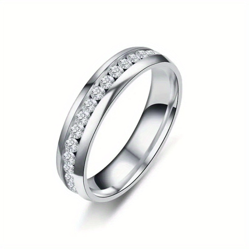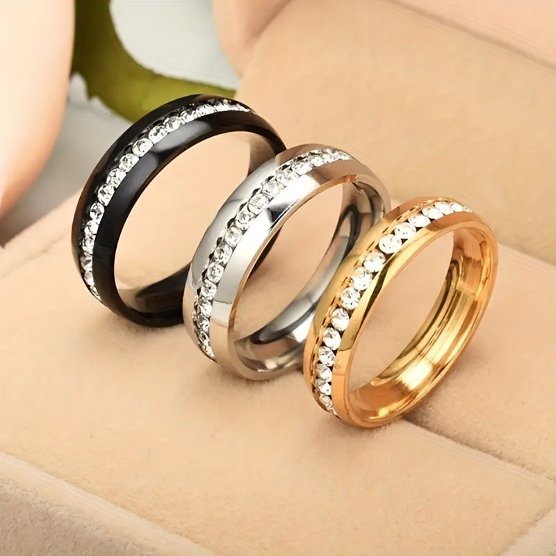 This titanium steel ring features sparkling rhinestones, making it a perfect gift for weddings or special occasions.