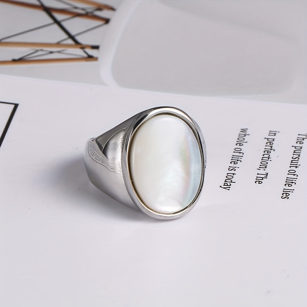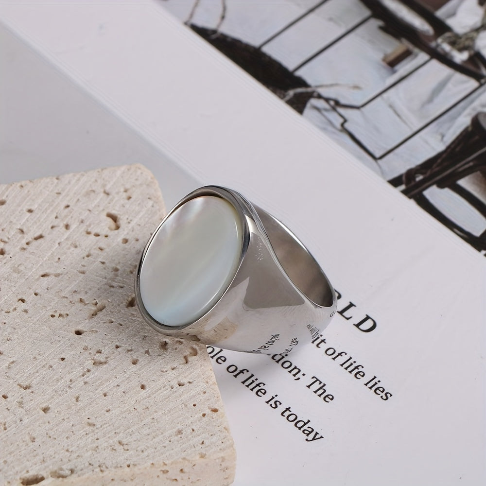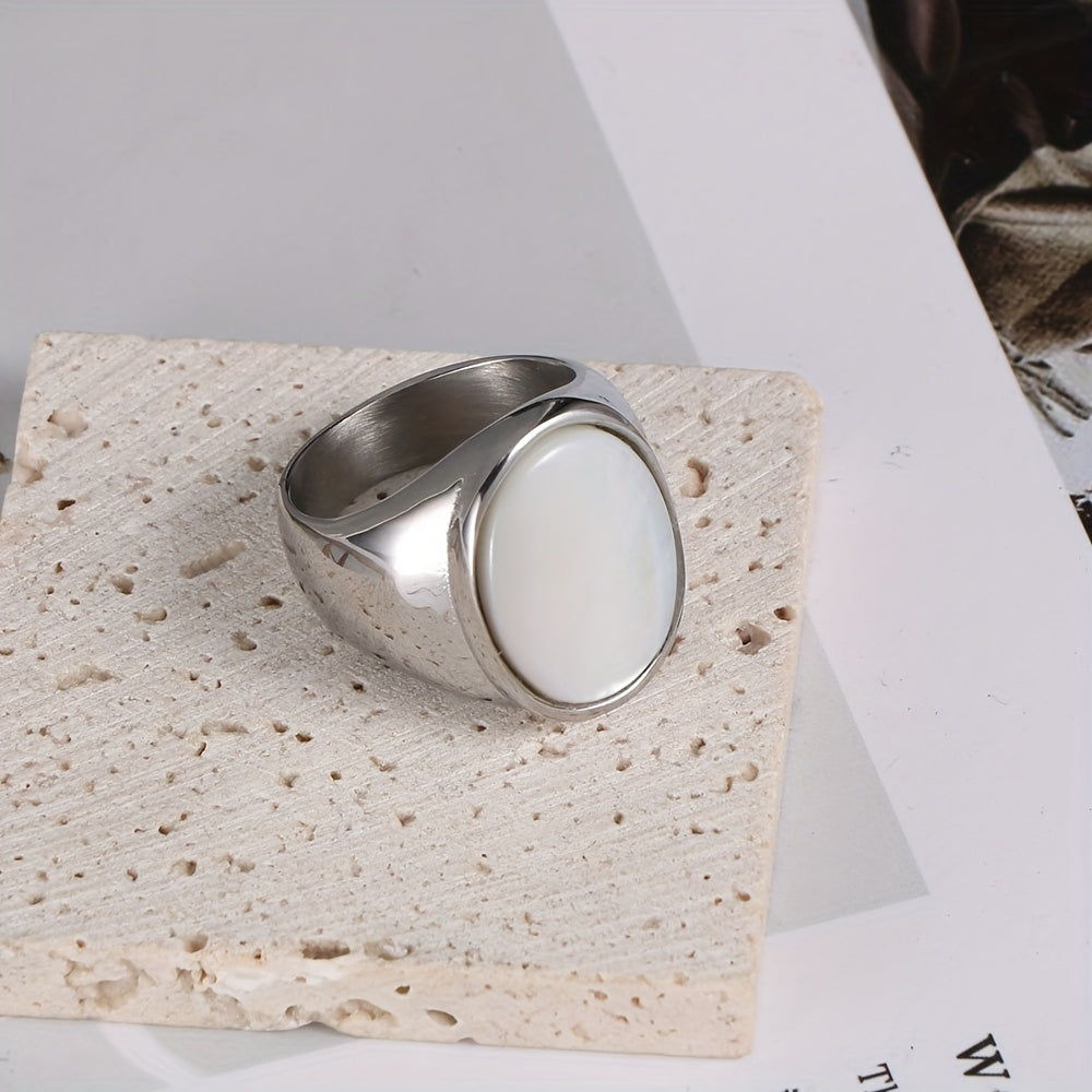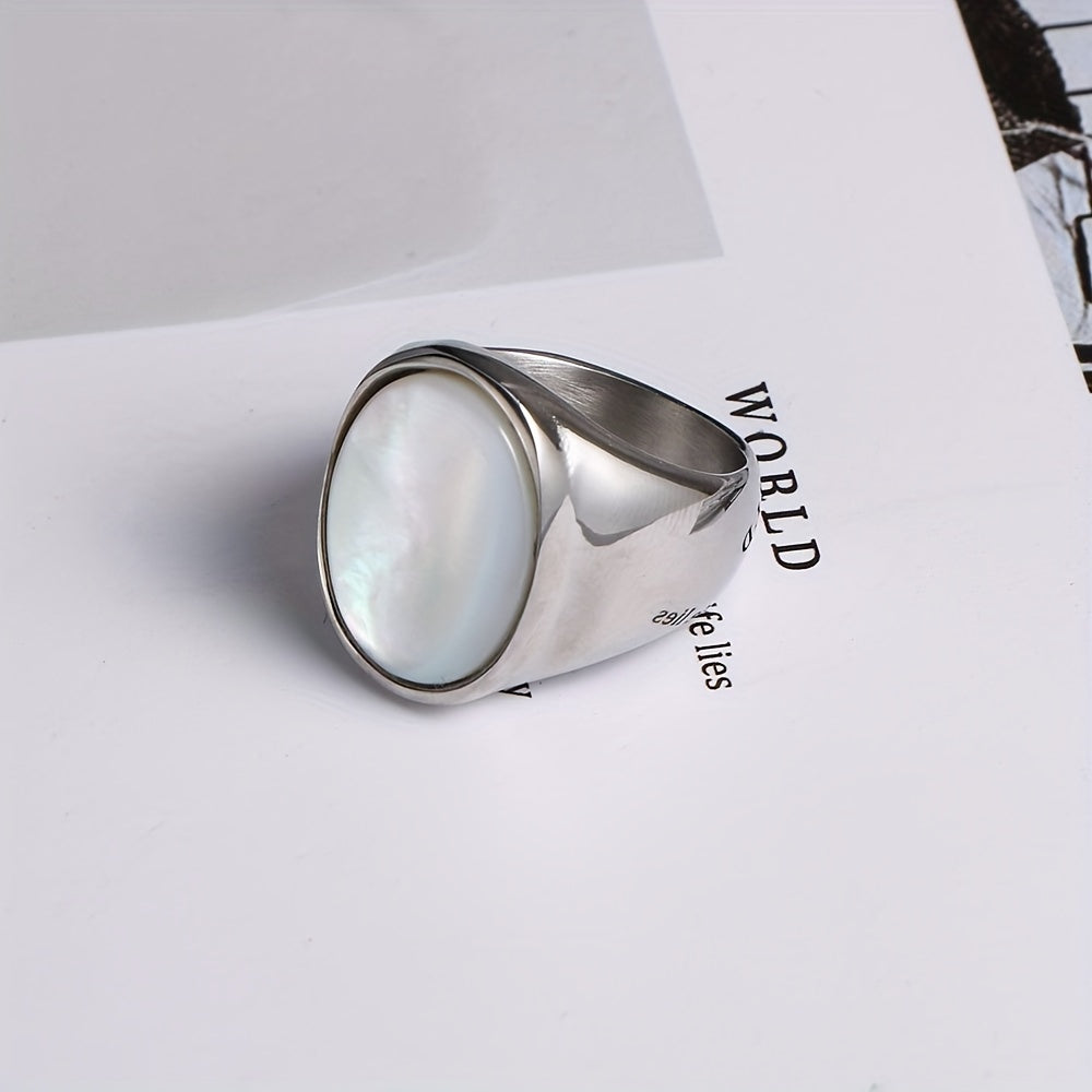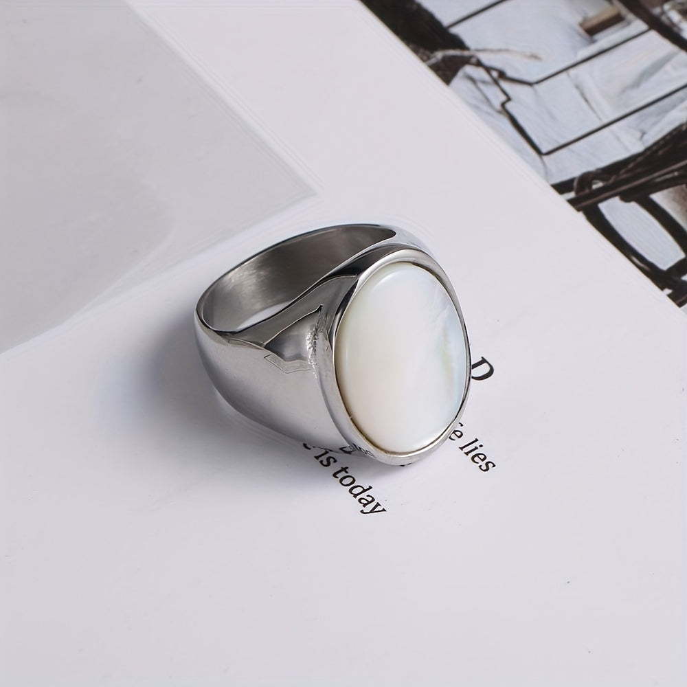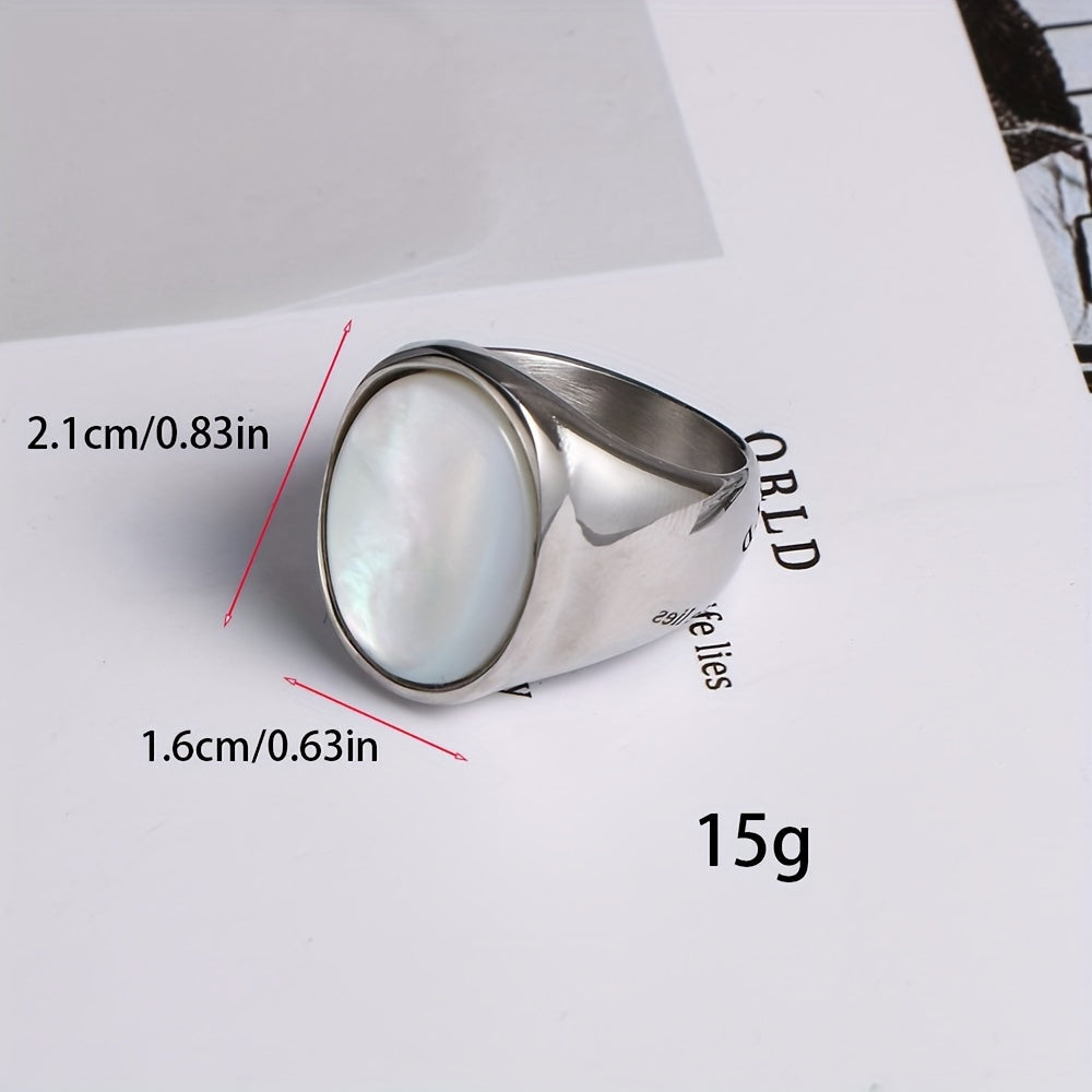 This ring combines European and American style with a round 316 stainless steel design and synthetic gems. Versatile and suitable for both men and women.