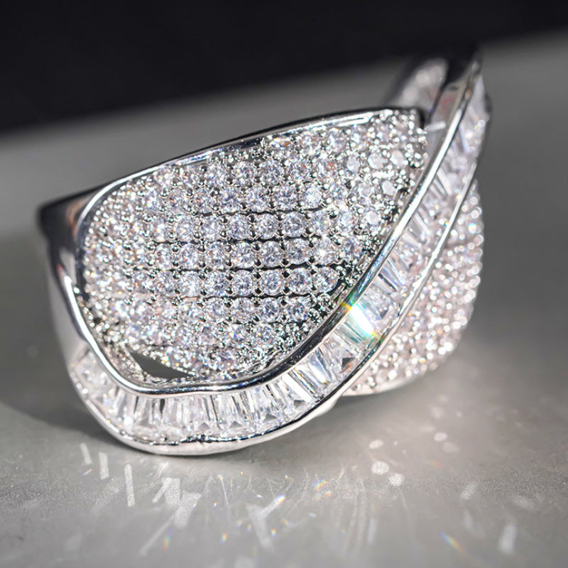 Elegant twisted ring featuring sparkling synthetic zirconia on a high copper band. Ideal for daily wear, parties, and casual events. Perfect party jewelry accessory.