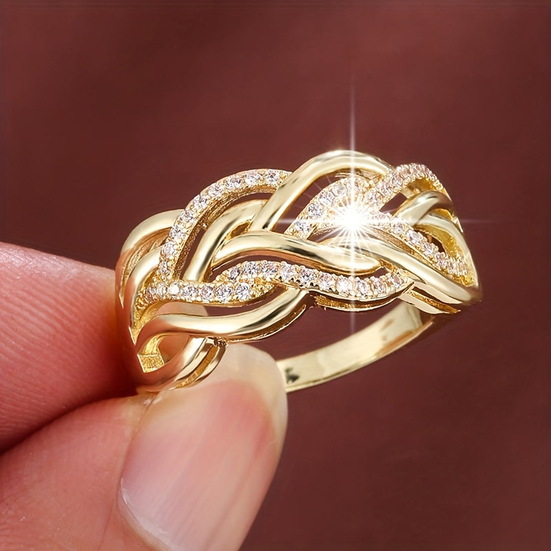 Twisted Rope Ring with CZ Inlay Copper Band for Women