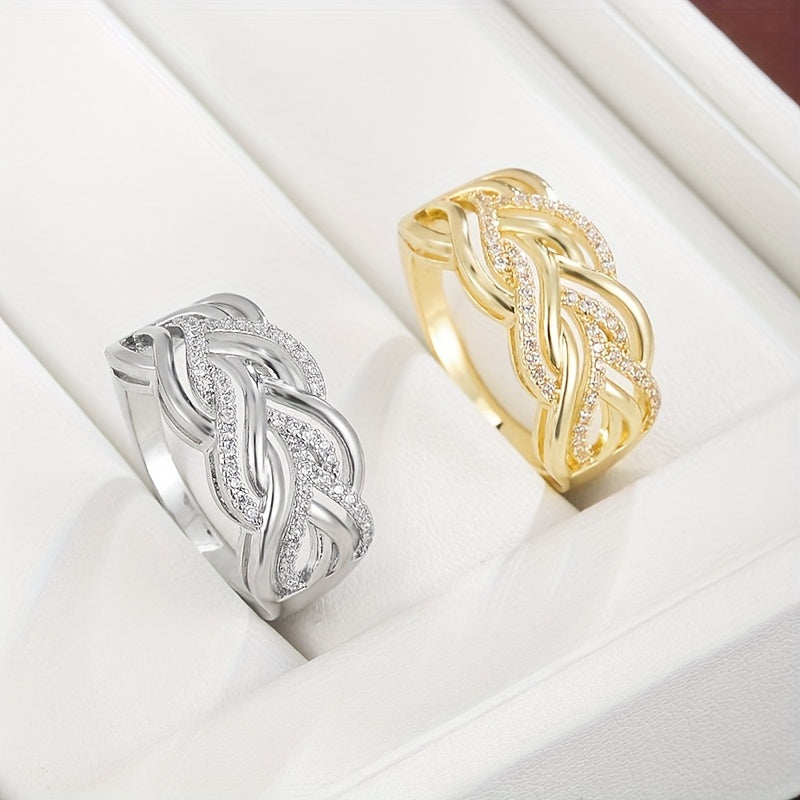 Elevate your casual attire with this stunning twisted rope ring featuring synthetic cubic zirconia stones. Made from high-quality copper, this versatile accessory is perfect for year-round wear and making a great gift.