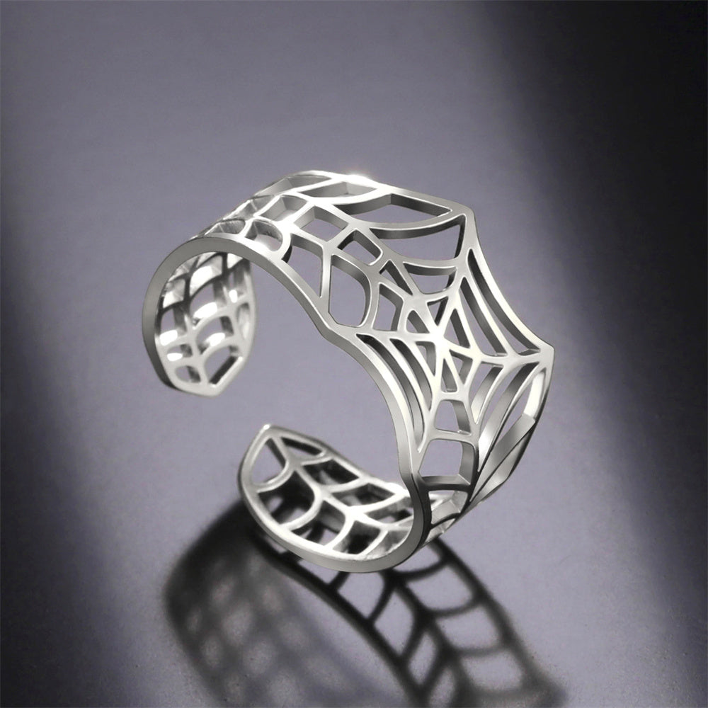 This spider web ring is a perfect accessory for Halloween. Made of stainless steel, it features intricate openwork design suitable for both men and women.