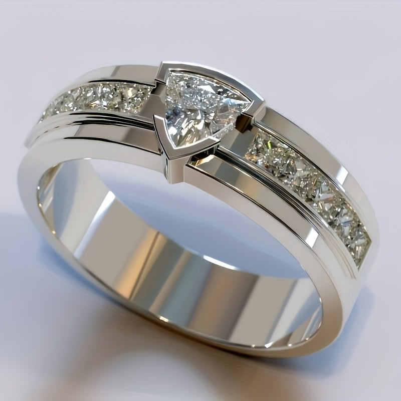 This vintage inspired alloy single ring features rhinestone accents, making it a perfect unisex engagement or wedding band. The ring has no plating and is a timeless piece of jewelry.