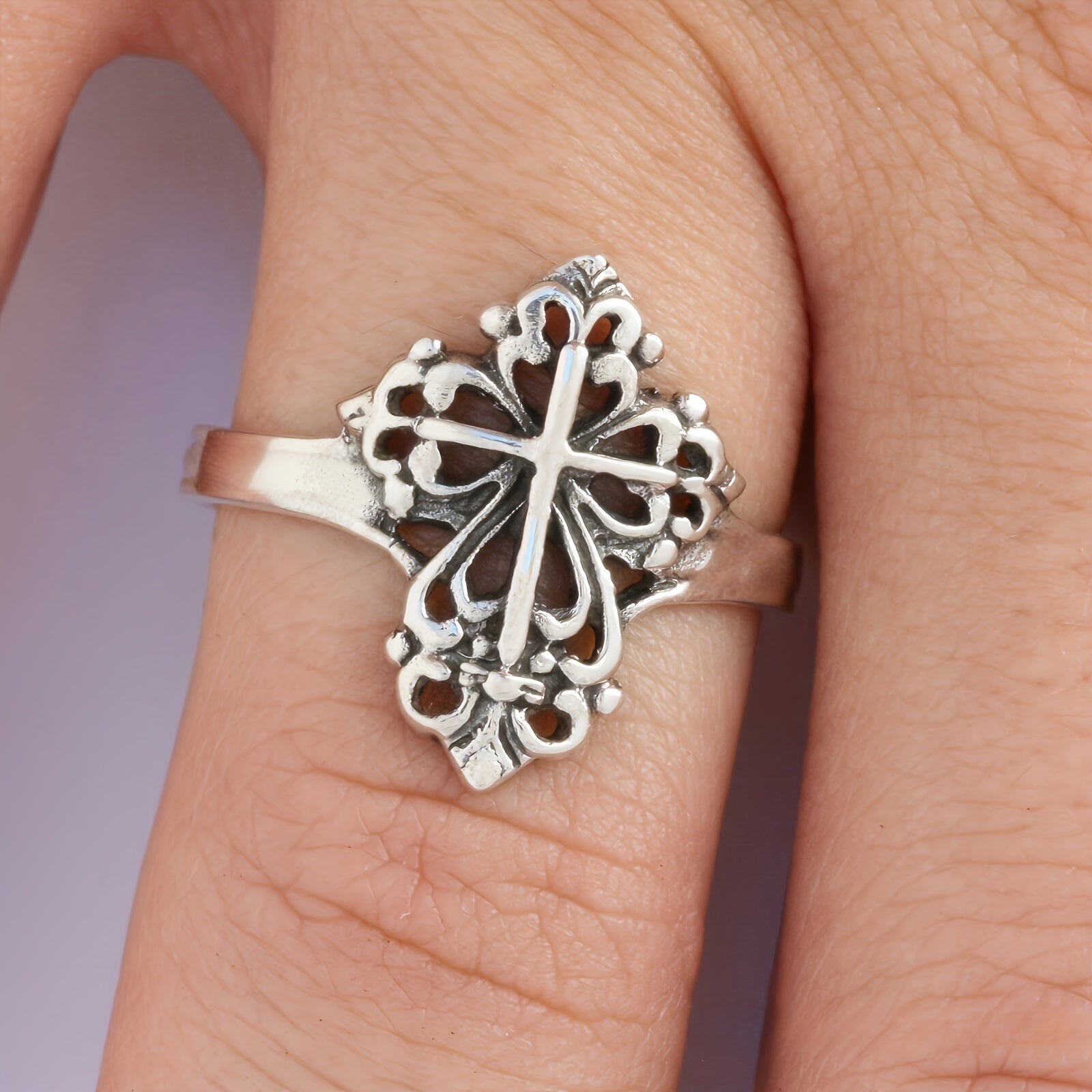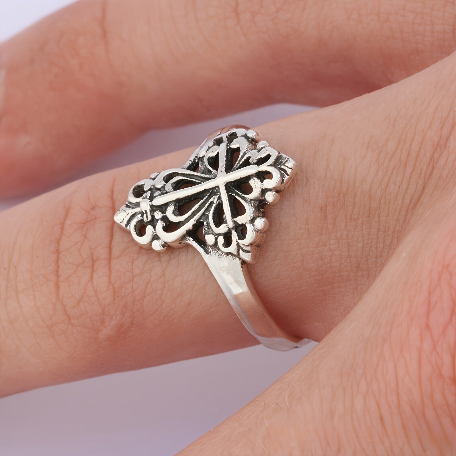 This vintage bohemian cross ring features intricate retro design with golden plating, making it perfect for daily wear and parties. It is a durable gift for family, friends, and lovers.