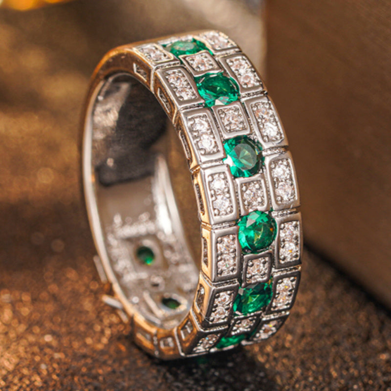 This women's eternity ring features a vintage-inspired design with synthetic zircon gemstones. Made of high-quality copper, it is suitable for all-season wear.