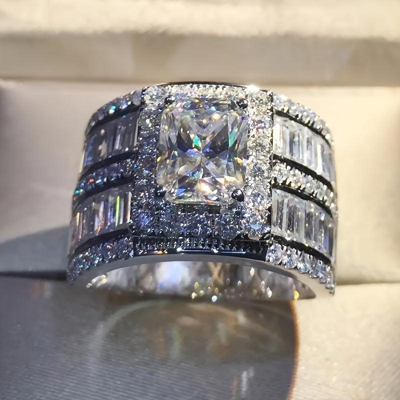 This stylish wide faced ring is exquisitely designed with a square sparkling synthetic zirconia setting, perfect for women.
