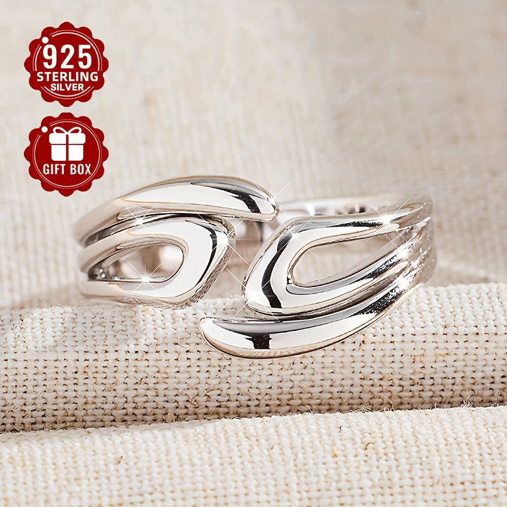 This open ring is made of pure 925 silver with a hip hop design. It features a hollow irregular geometric line and is adjustable to fit any finger size.