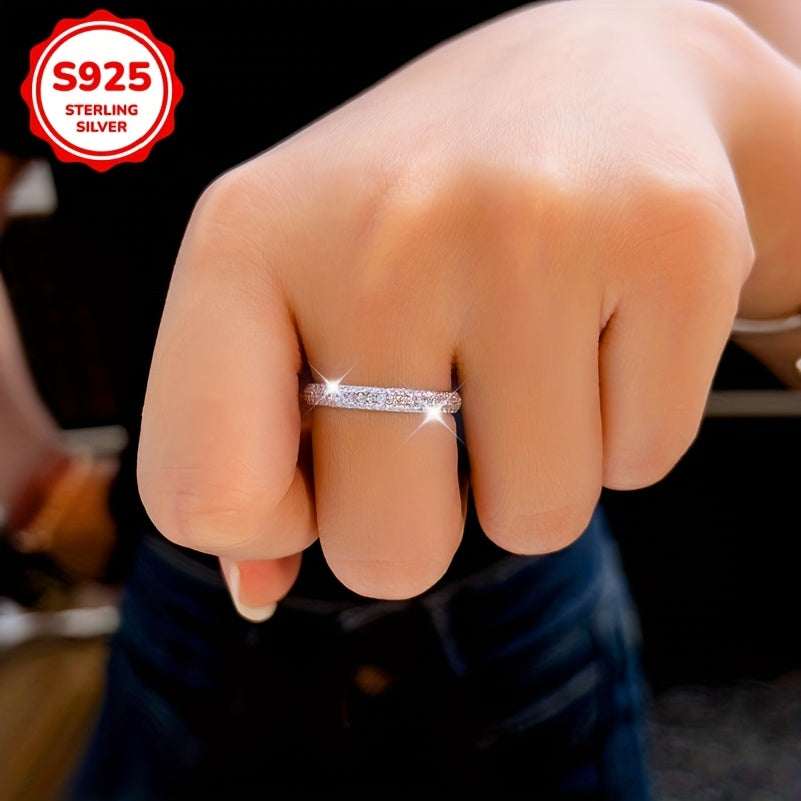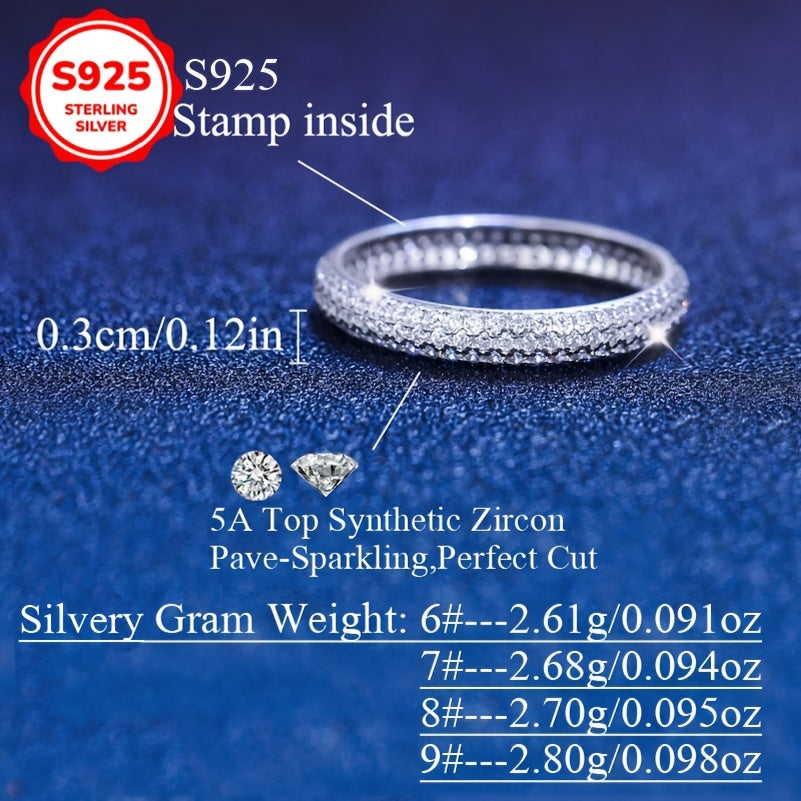 This 925 pure silver ring is adorned with synthetic Zirconia, making it perfect for engagement or wedding finger jewelry. It is low allergy and ideal for daily wear.