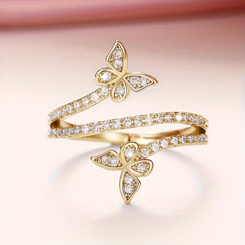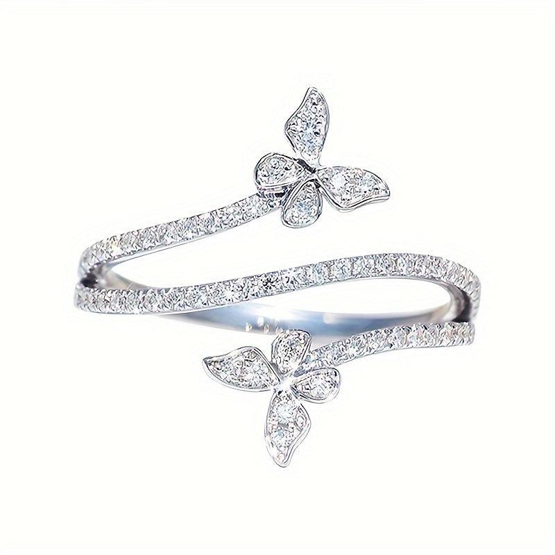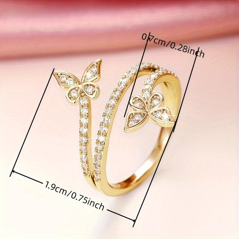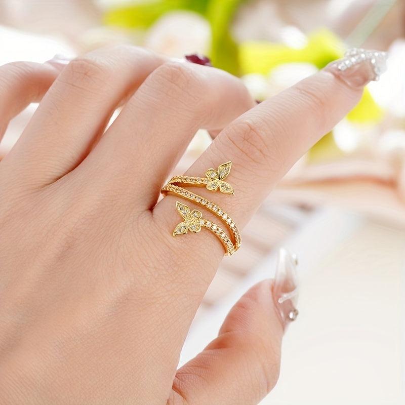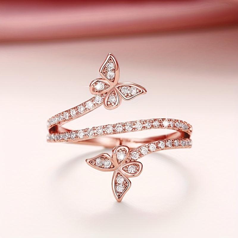 Elegant wrap ring featuring a butterfly design, crafted with plated copper and synthetic zirconia. Perfect for all seasons and makes a great gift for those born in April.