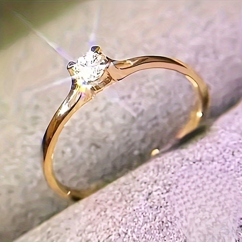 This stunning women's engagement ring features sparkling cubic zirconia in a classic 4 prong setting. Perfect for weddings and casual attire. April birthstone. Copper band.